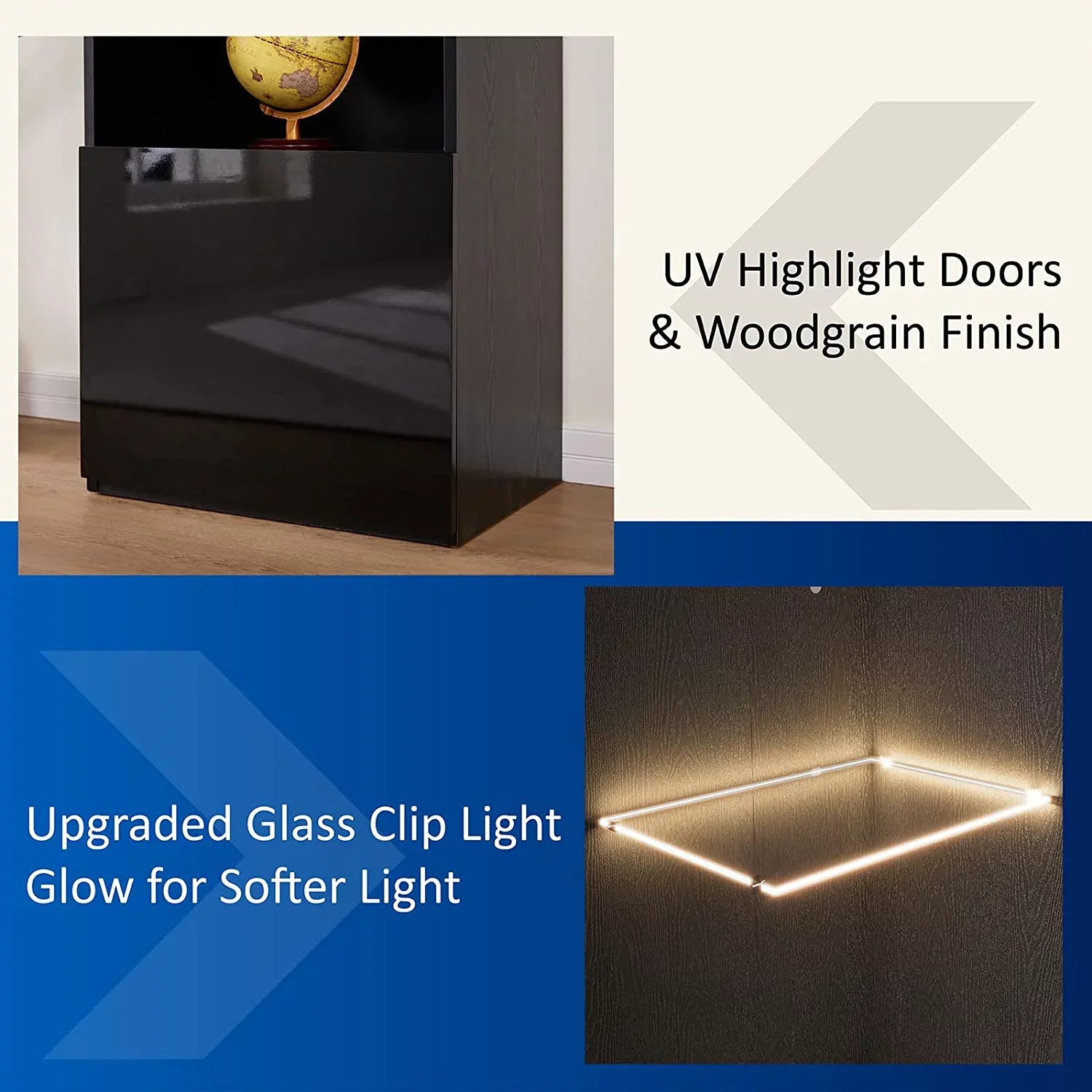 2 Piece Bookcase Storage Cabinet, Wood Glossy Bookshelf with 3-Tier Shelves,Living Room, Black