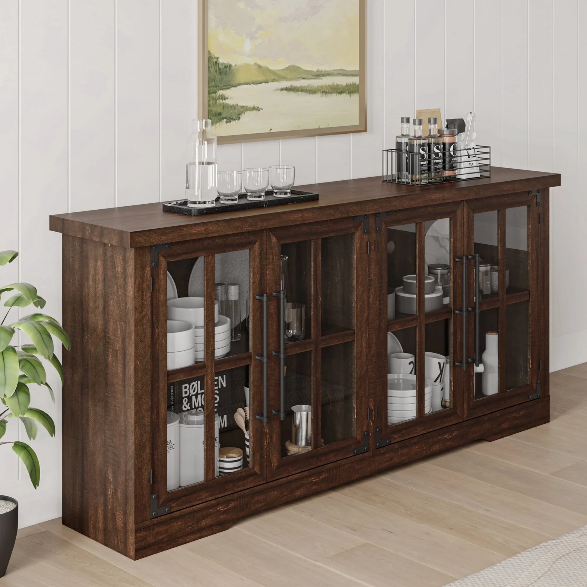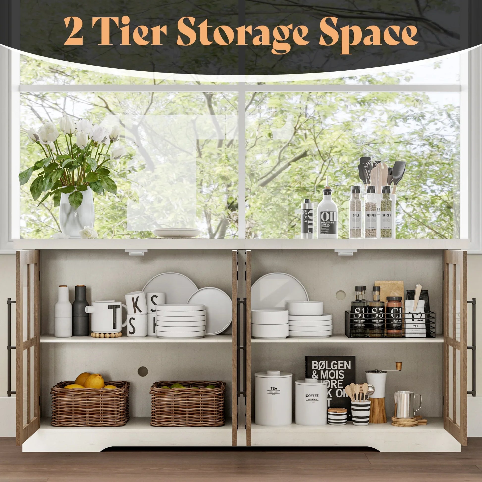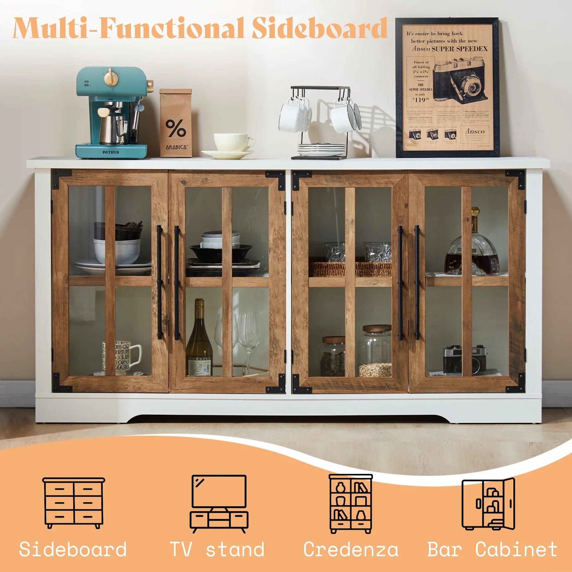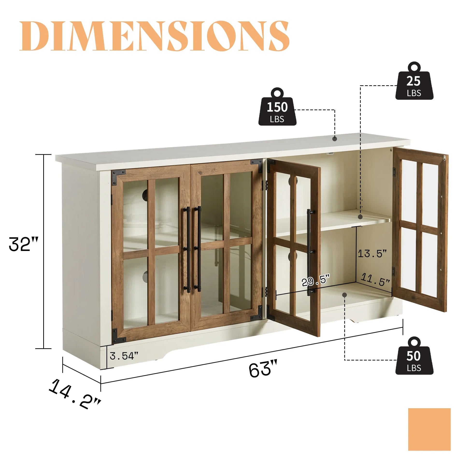 63" Buffet Sideboard Cabinet with Storage, Large Modern Farmhouse Cabinet with 4 Doors