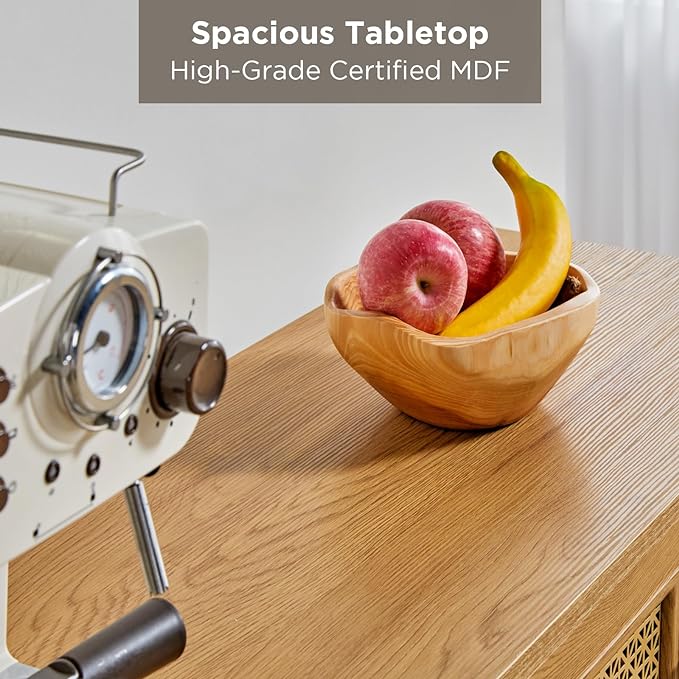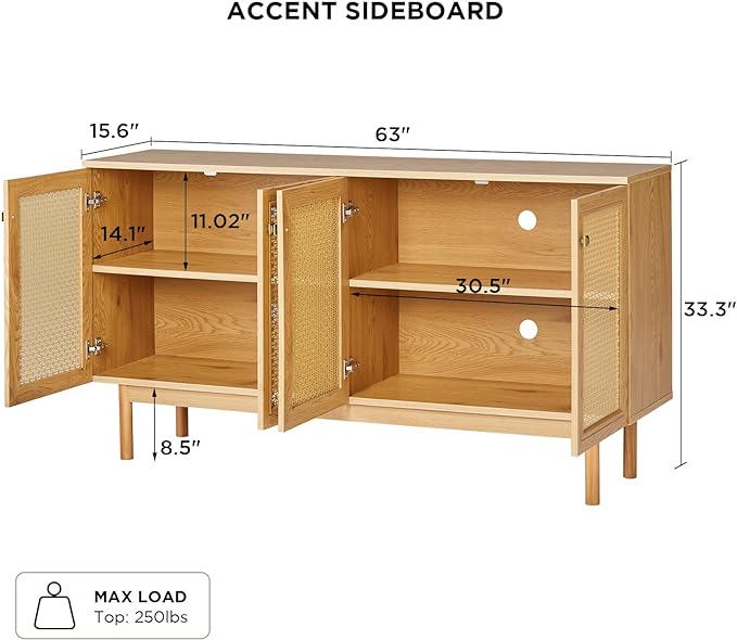 63" Sideboard Buffets Cabinet, 2-Adjustable Shelves Sideboard with 4 Doors, Large Accent Storage Credenzas for Living Room, Dining Room, Bedroom, Natural