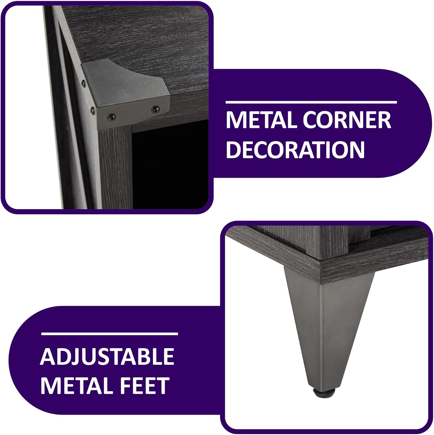 65" Fireplace TV Stand with 60" Glass Electric Fireplace, Industrial & Farmhouse Media Entertainment Center with Open Shelve Storage for TVs Up to 75", TV Console for Living Room, Gray