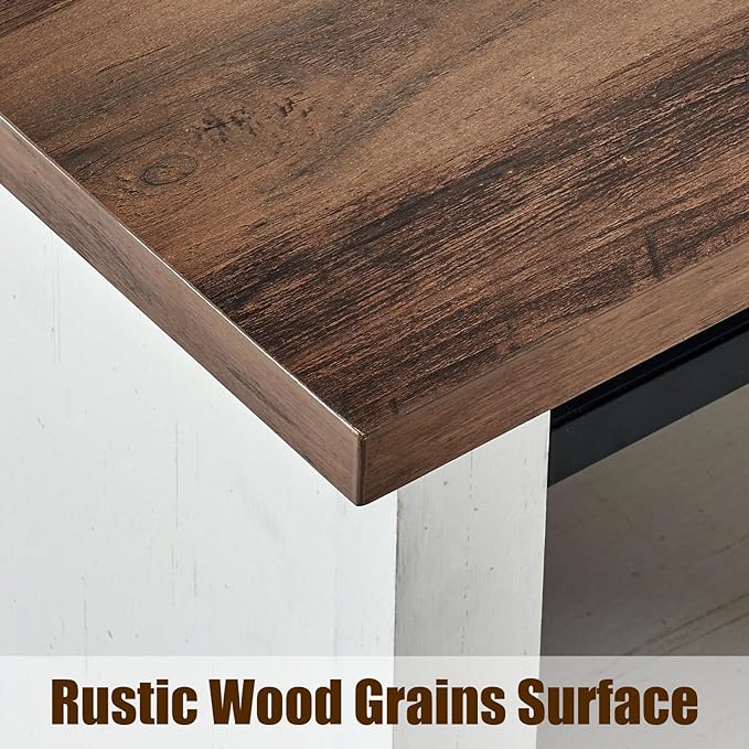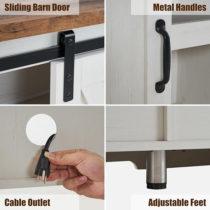 66" Farmhouse TV Stand for 75 Inches TVs, Entertainment Center with Sliding Barn Door and Adjustable Shelf & Feet, Console Table with Storage, Distressed White & Rustic
