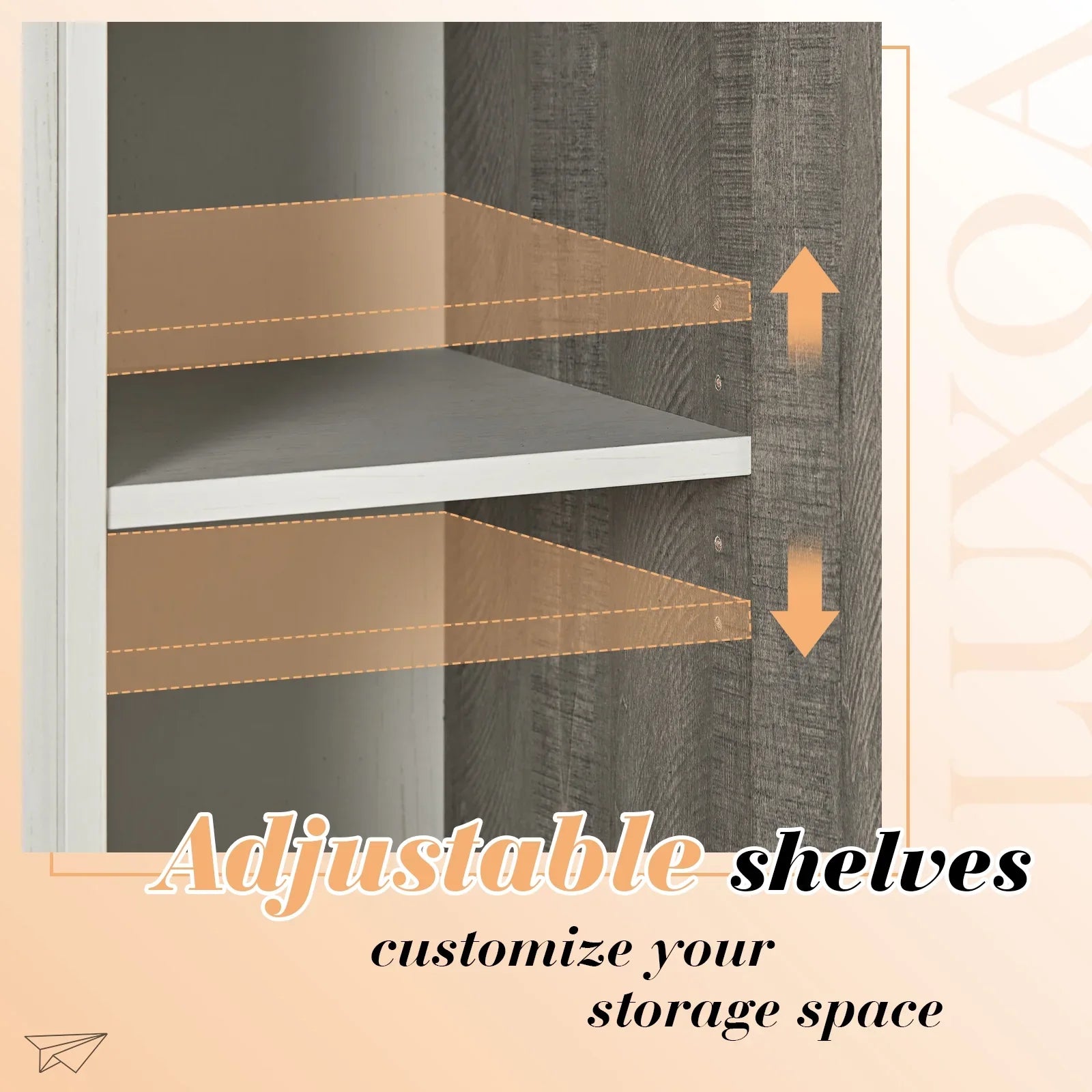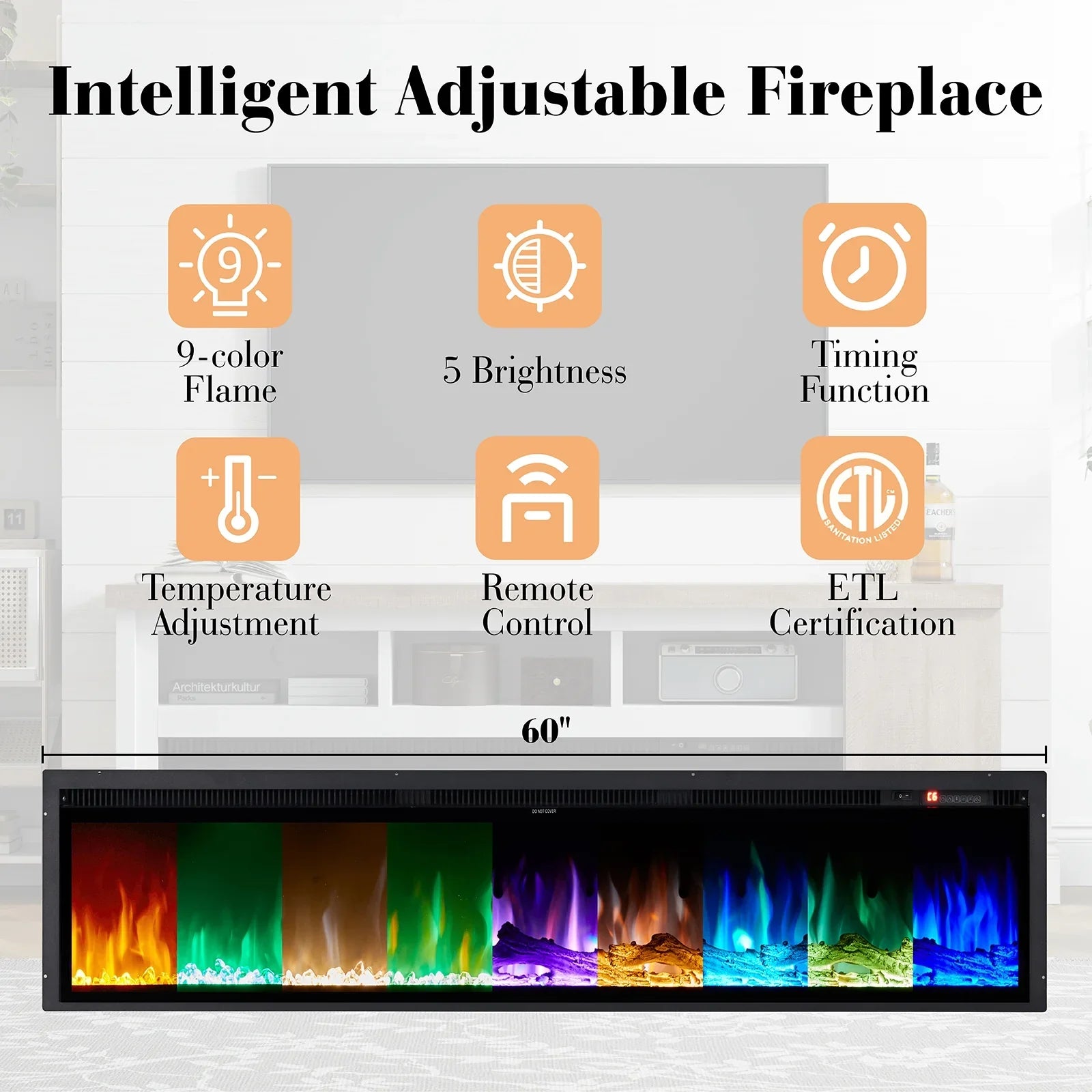75” Fireplace TV stand with 60” Electric Fireplace, Chunky Entertainment Center with Wood Grain, Color Clash Entertainment Stand for TVs up to 85”, White&Grey