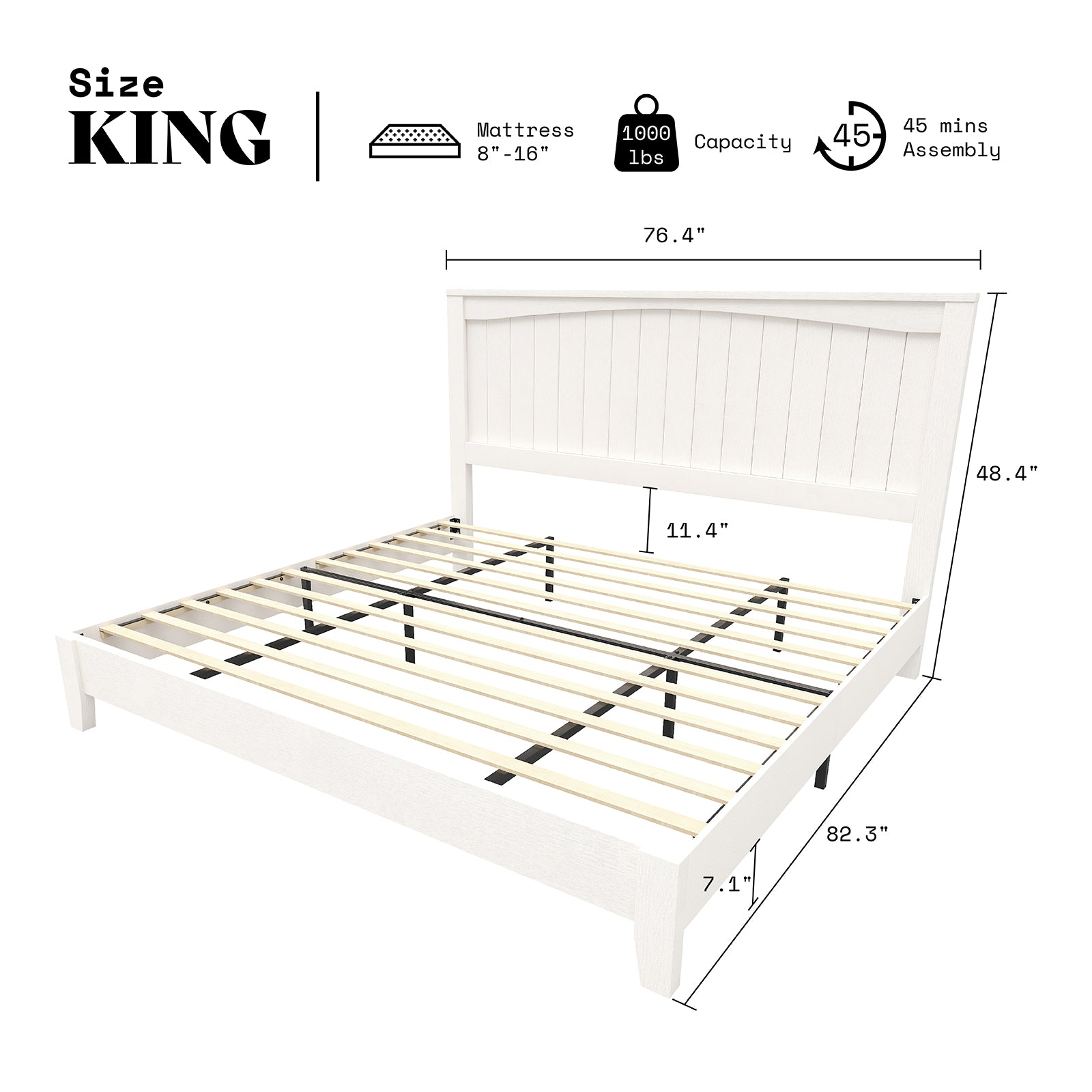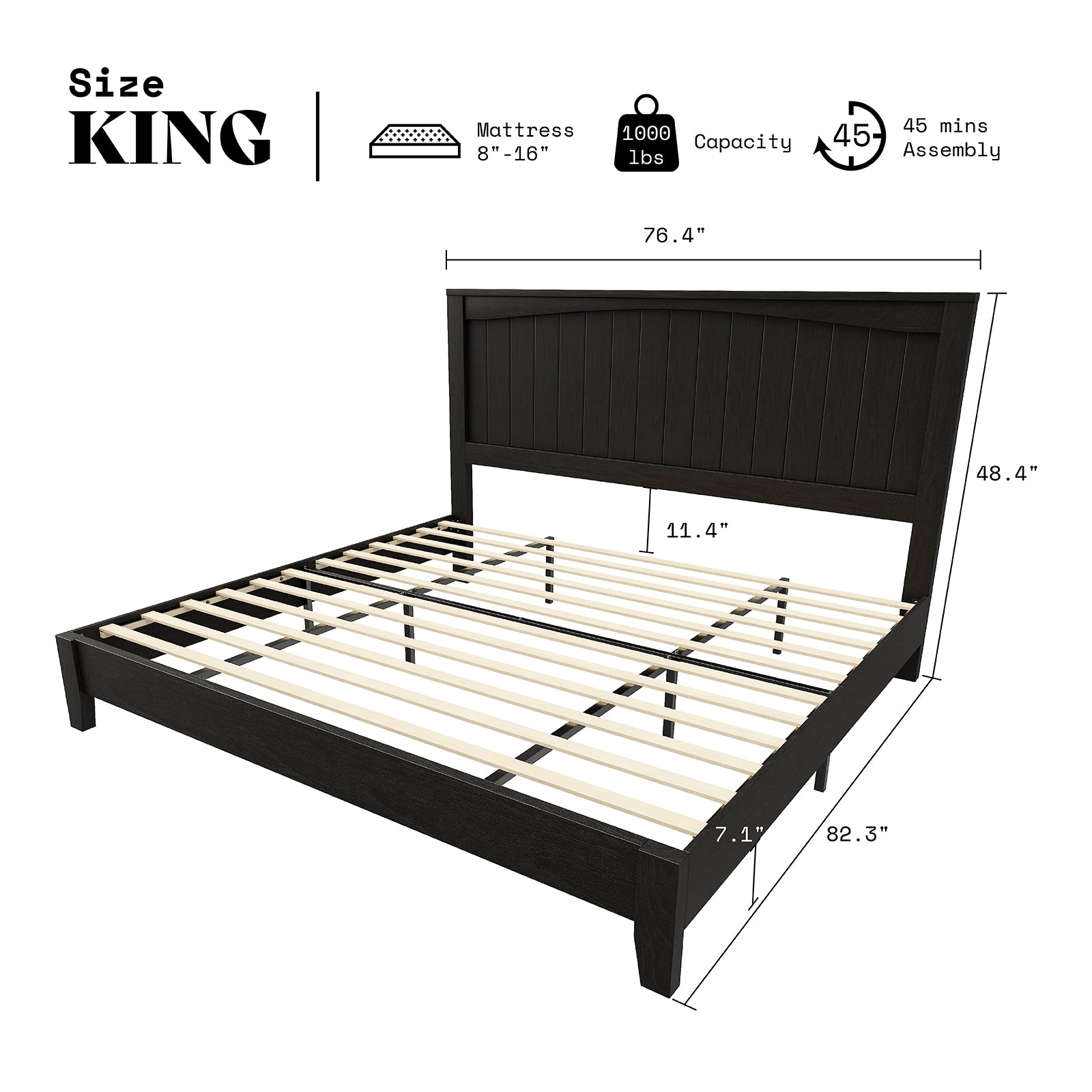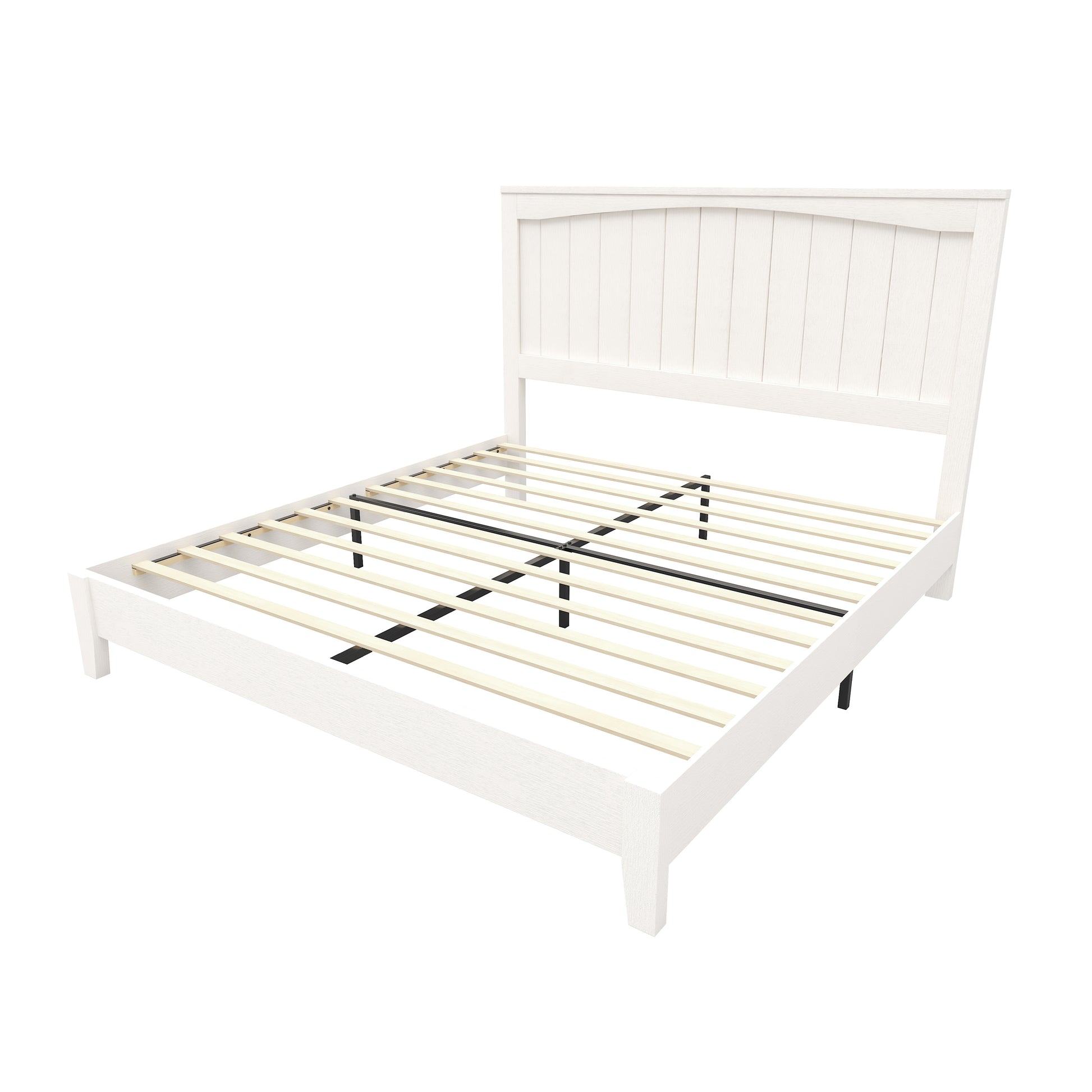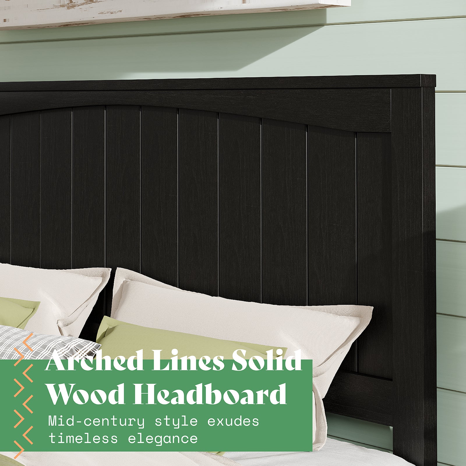 AMERLIFE 48.4" Solid Wood Bed Frame, Mid Century Modern Platform Bed with Arched Lines Headboard, No Box Spring Needed/Noise Free