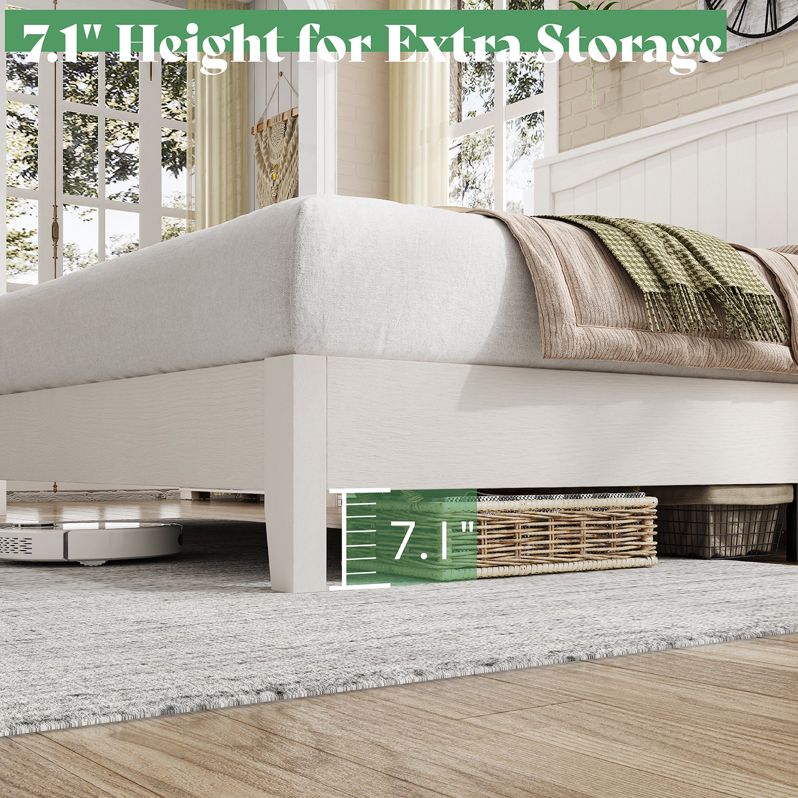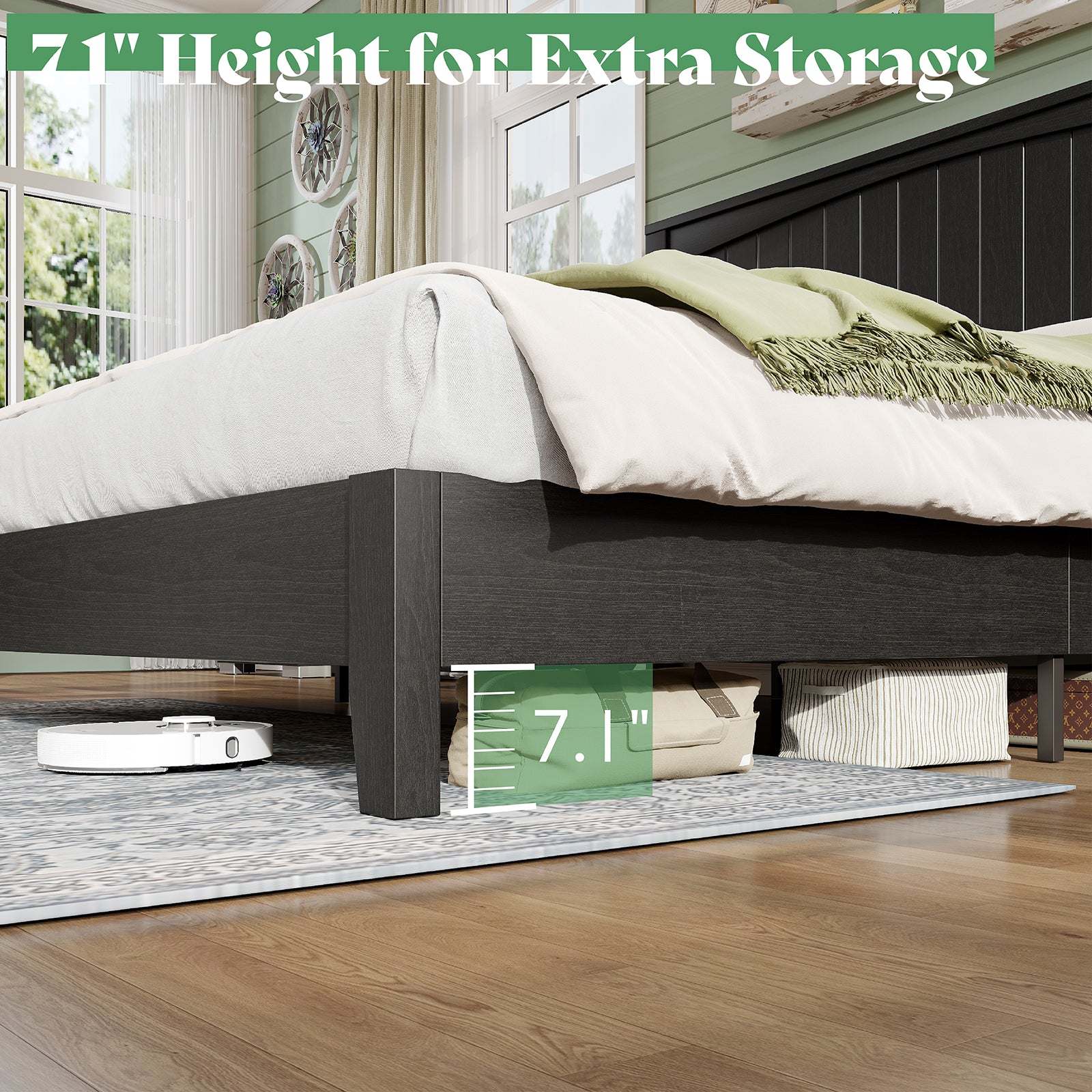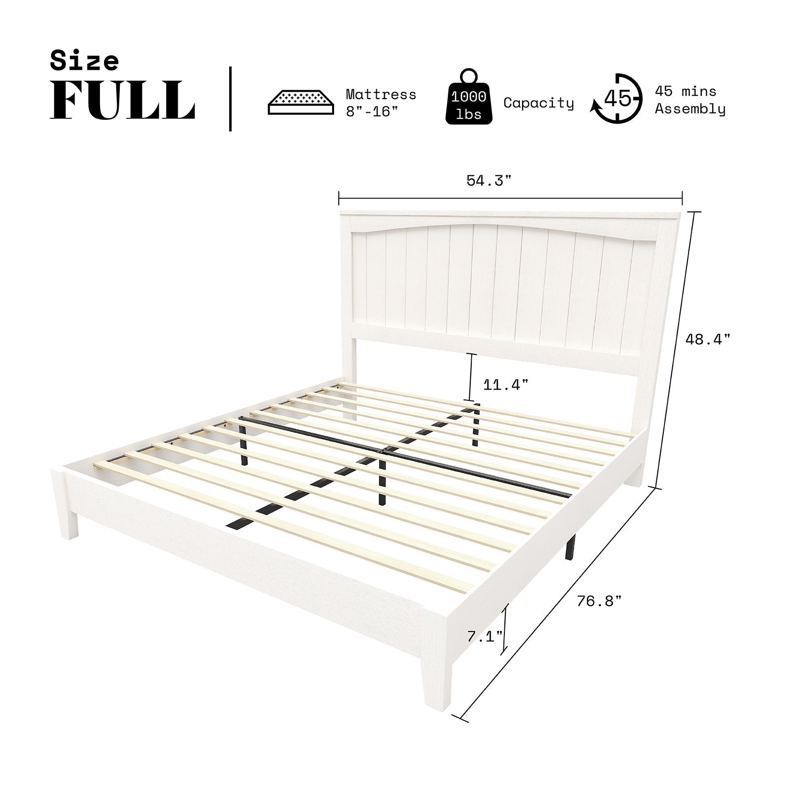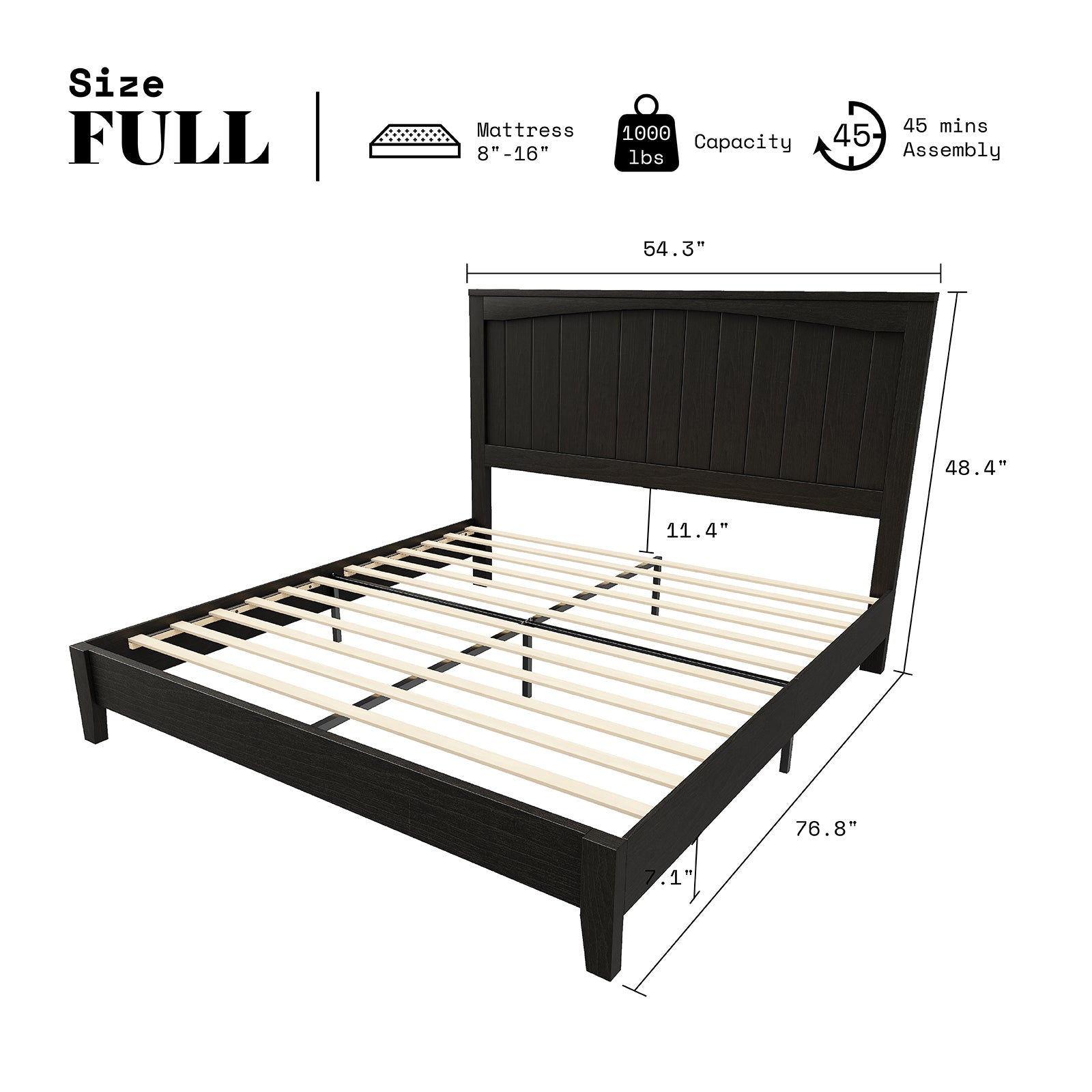 AMERLIFE 48.4" Solid Wood Bed Frame, Mid Century Modern Platform Bed with Arched Lines Headboard, No Box Spring Needed/Noise Free