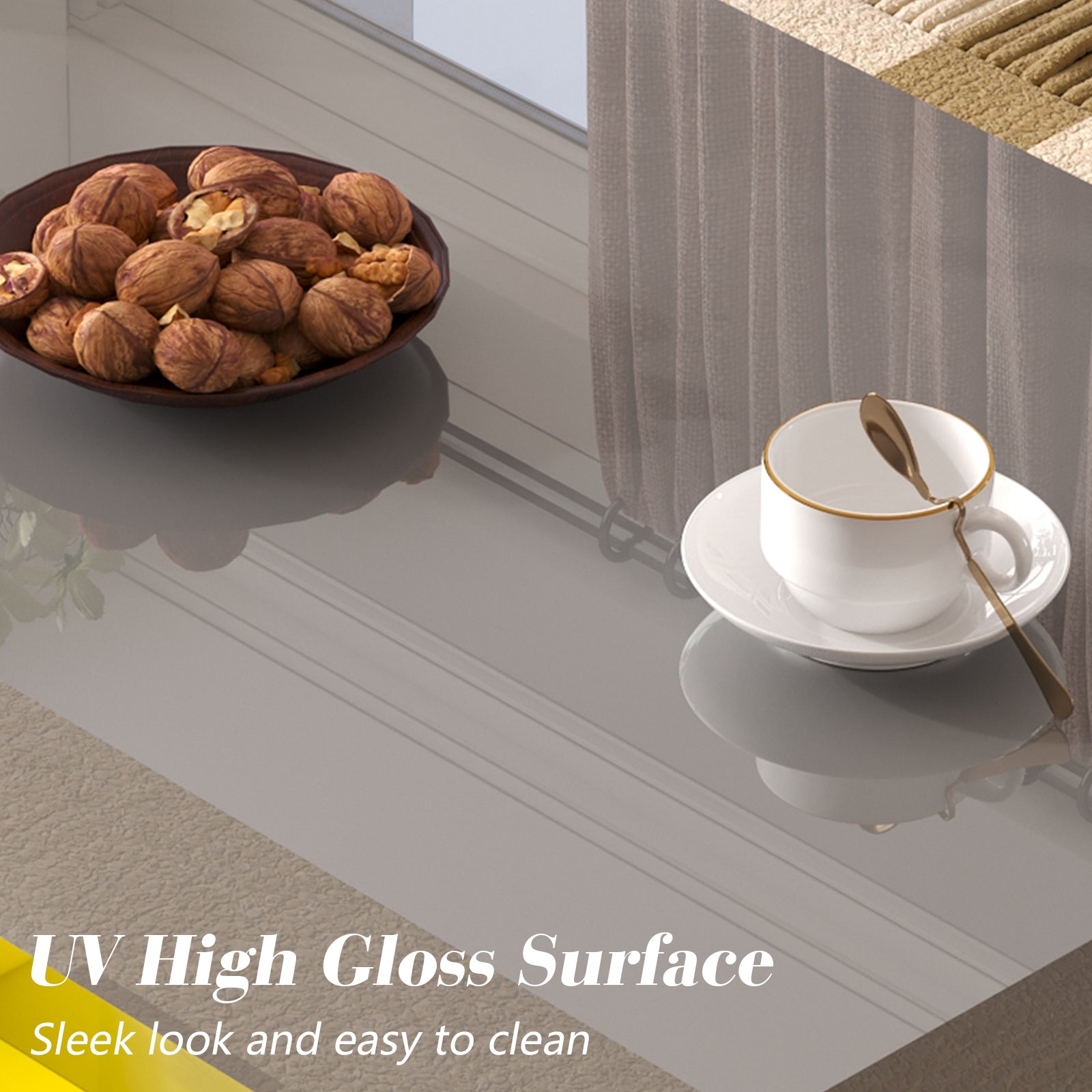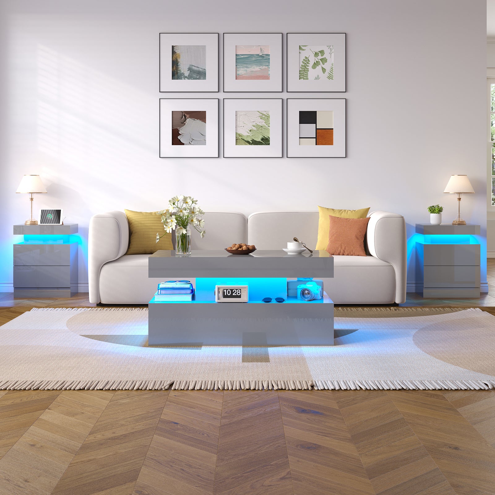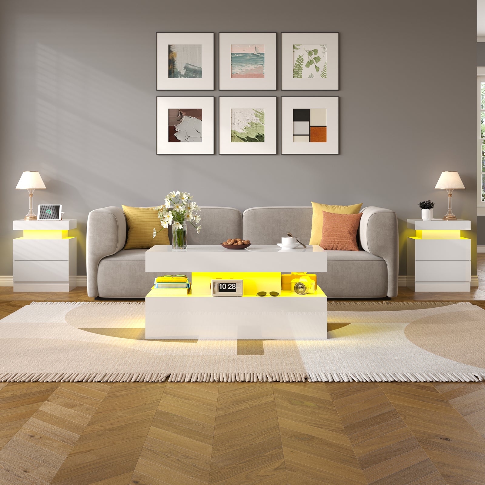 Coffee Table with LED Light, Modern High Gloss Finish Center Table with 2-Tier Storage Space, Minimalist Coffee Table for Living Room, Office, Black