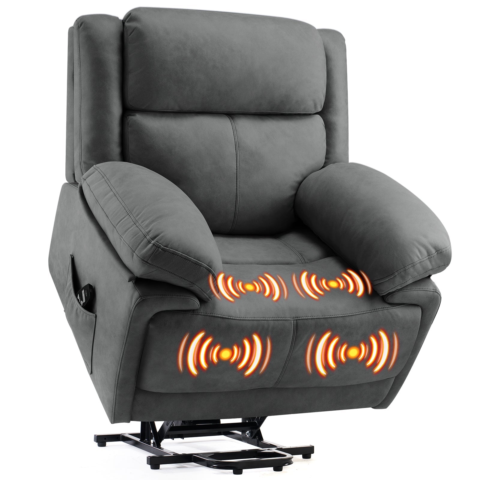 Larger & Ultimate Comfort: Stand and sit with greater ease on our large power lift recliner chair, which is bigger than other large lift chairs. The spacious seat, measuring 22"W x 22"D, ensures a cozy and delightful seating experience.Supportive & Stable Design: Embrace ultimate comfort with overstuffed pillows on the back, seat, and armrests. The sturdy metal base ensures enduring durability and stability, enhancing overall support.Powerful Lift Assistance: Our electric recliner chairs are empowered by a counter-balanced lift mechanism, assisting seniors in effortlessly standing up or reclining to any position via remote control.Relaxing Vibration Massage: Immerse yourself in tranquility with 4 powerful vibrating massage motors offering 2 intensity levels and 5 modes. Experience a delightful sense of relaxation and comfort.Convenient & Easy to Assemble: Designed for your convenience, our power lift recliner chair for elderly features a USB port for device charging. Super-simple assembly allows one person to complete it in just 10 minutes.