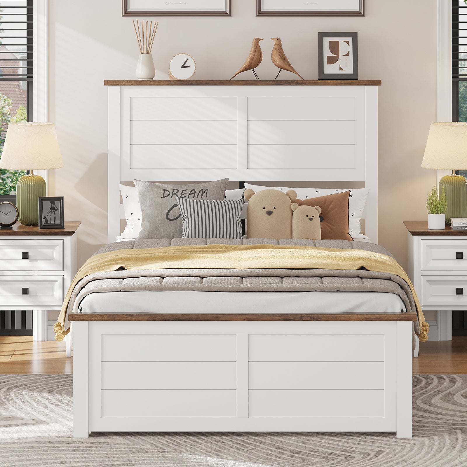 VANACC Farmhouse Bed Frame with Headboard and 4 Storage Drawers, Solid Wood Barn Door Platform Bed with Wood Slats, Heavy Duty Mattress Foundation, Non-Slip & Noise-Free