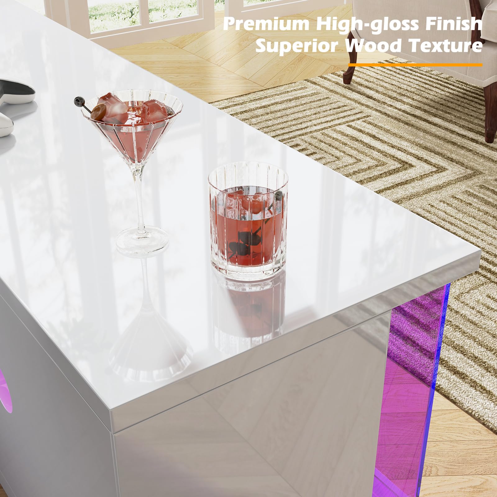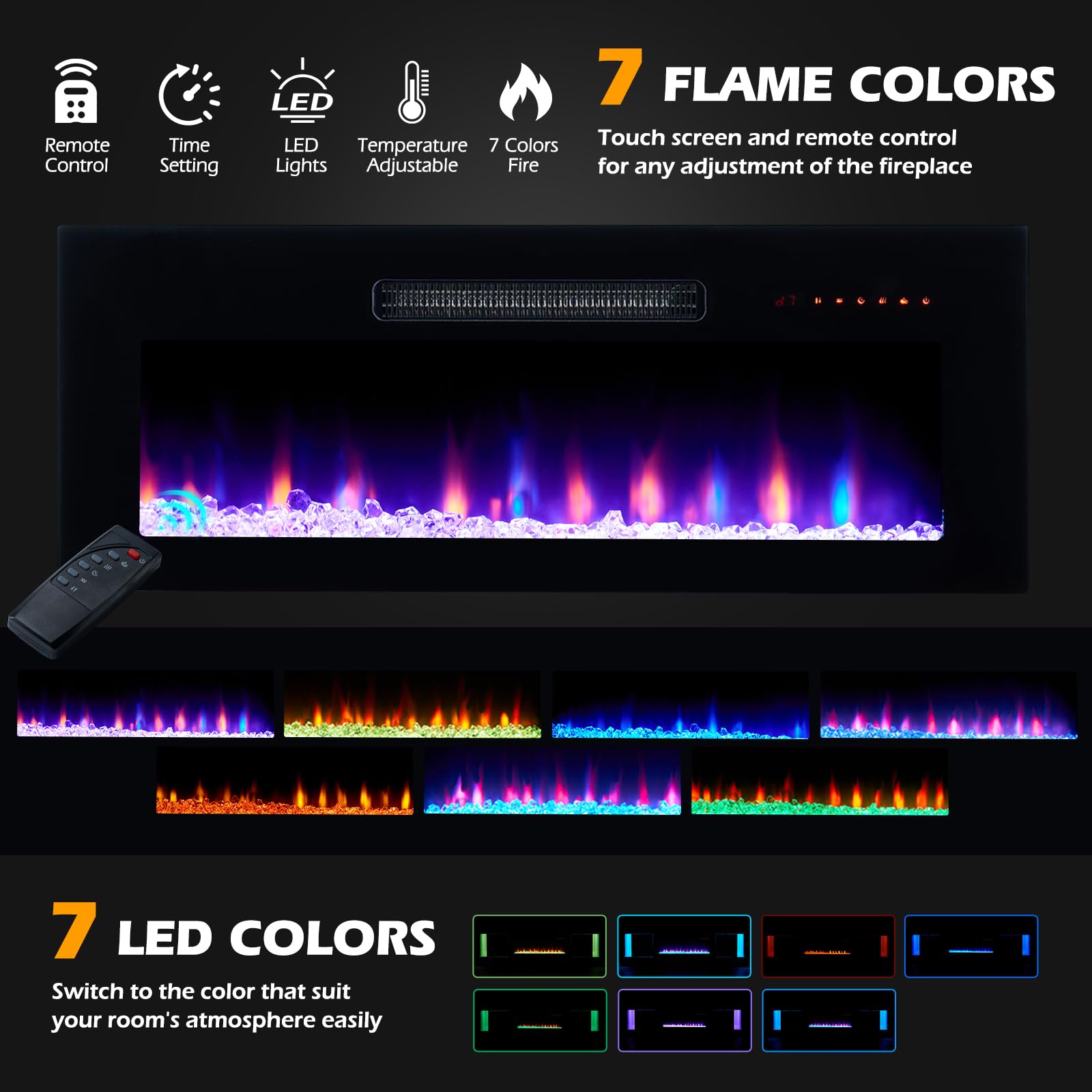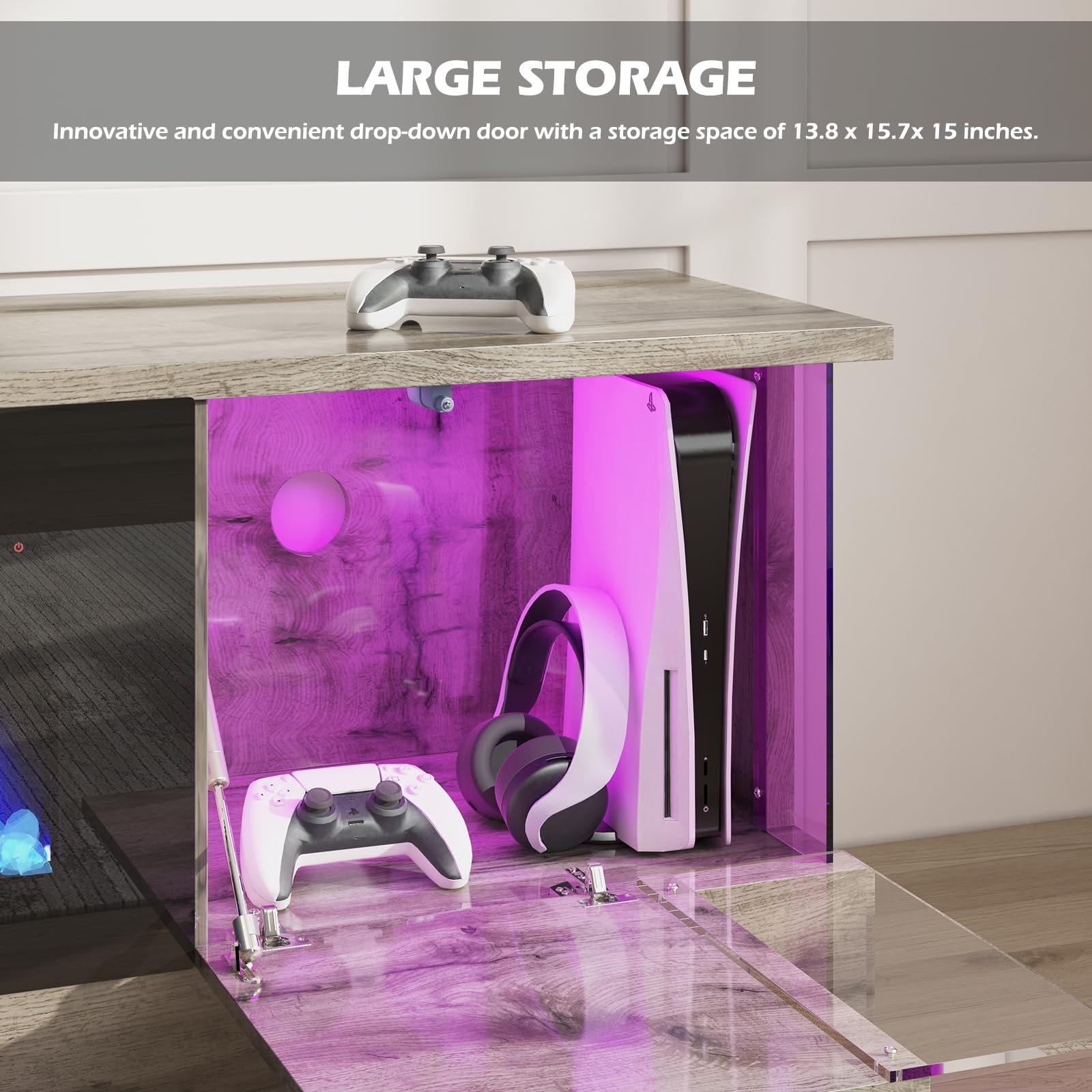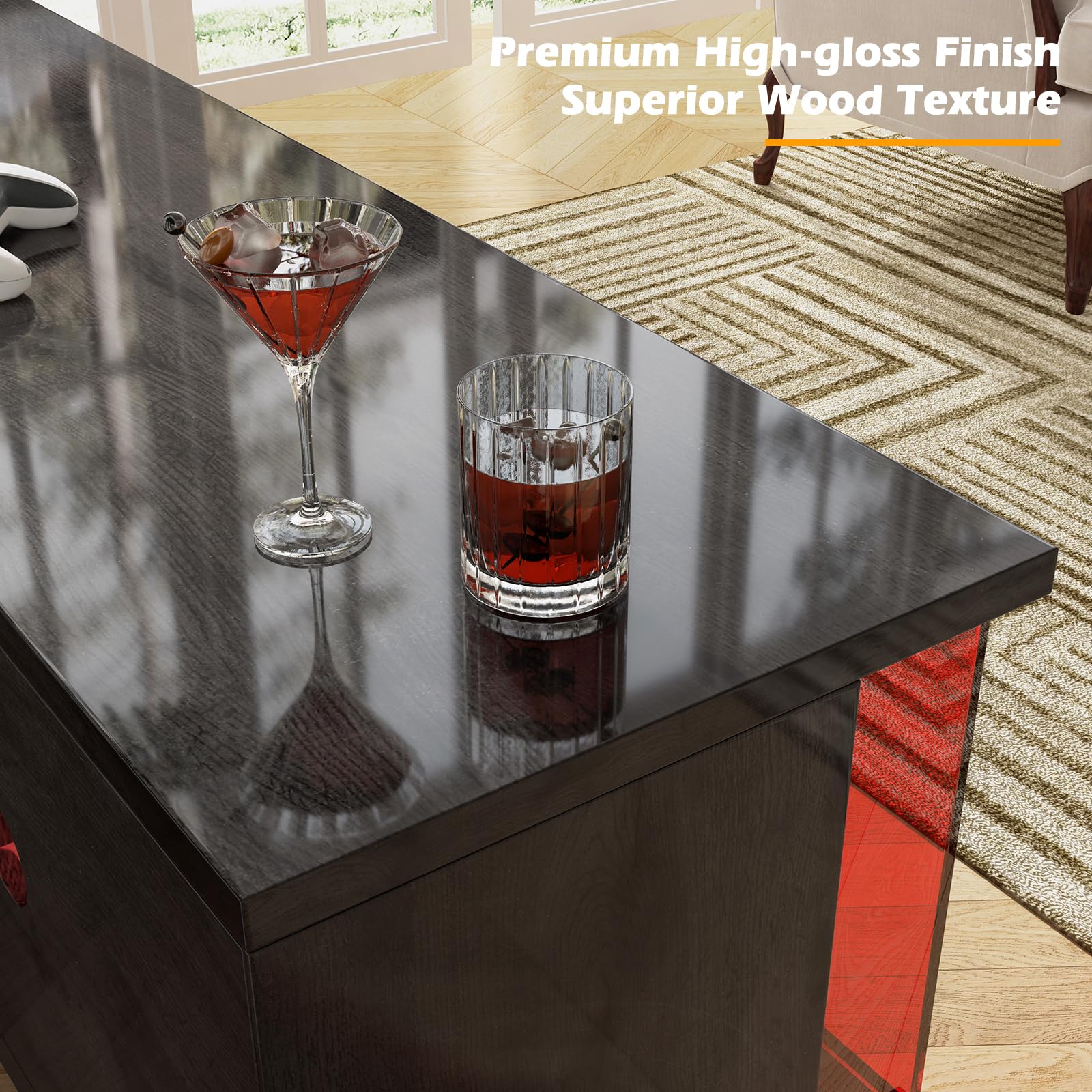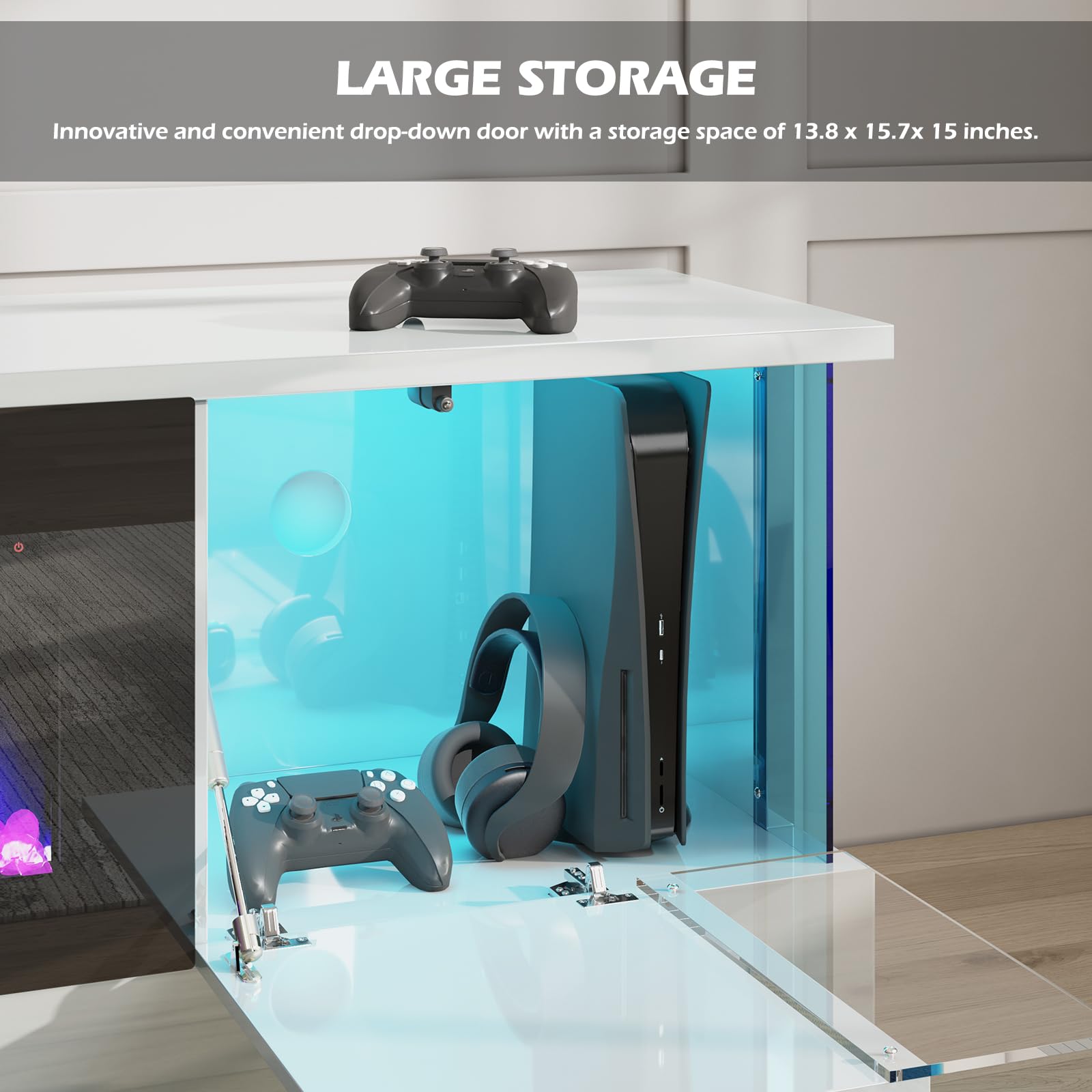 Fireplace TV Stand with 36" Electric Fireplace, 70" Modern Wood Grain High-Gloss TV Cabinet for Living Room, LED Entertainment Center with Flip-Down Doors for TVs up to 70", Black