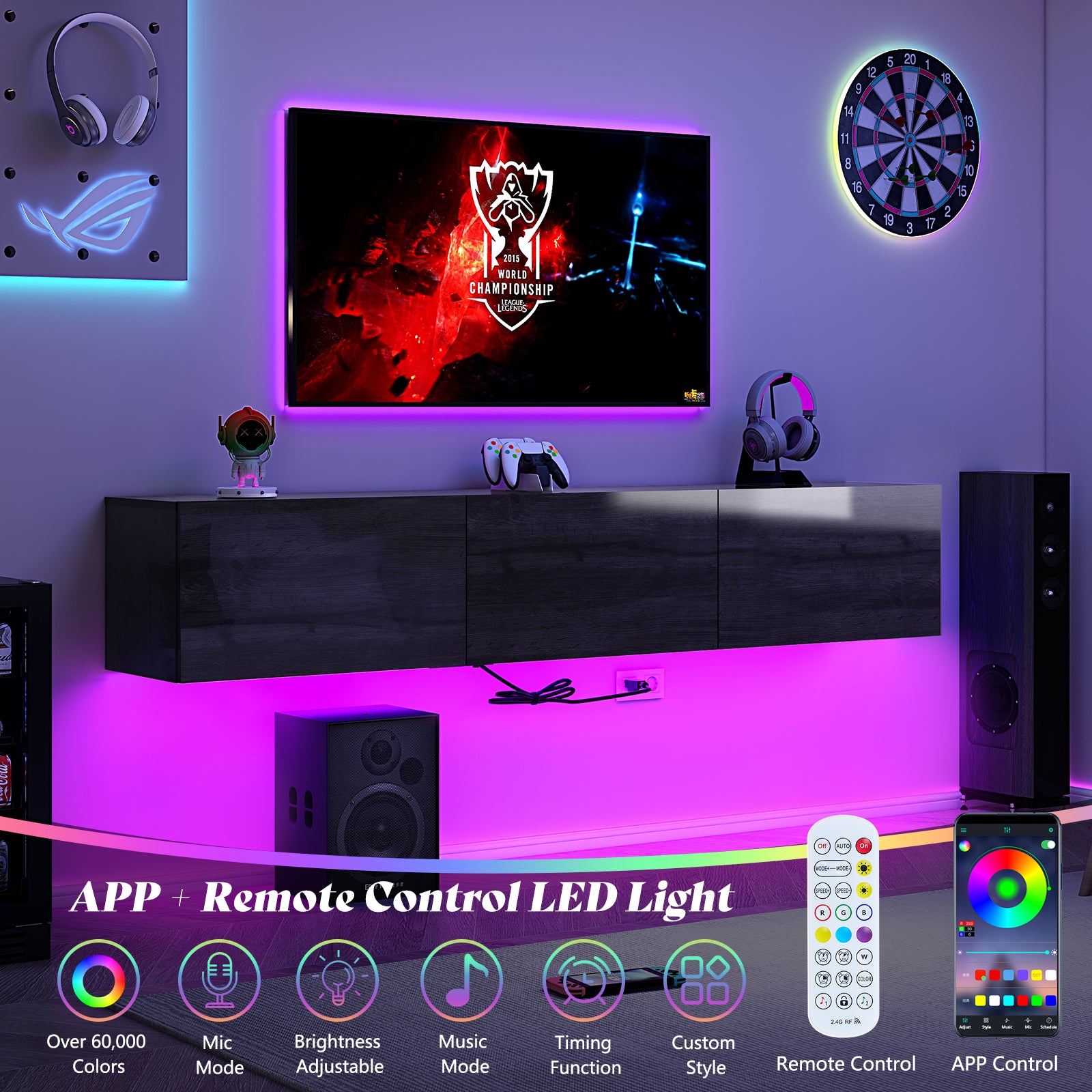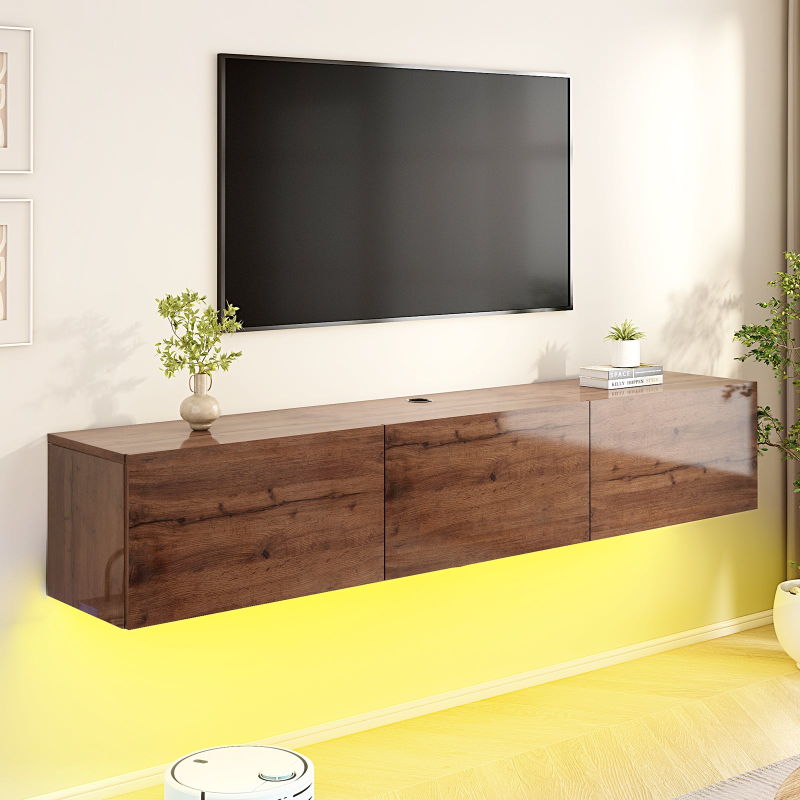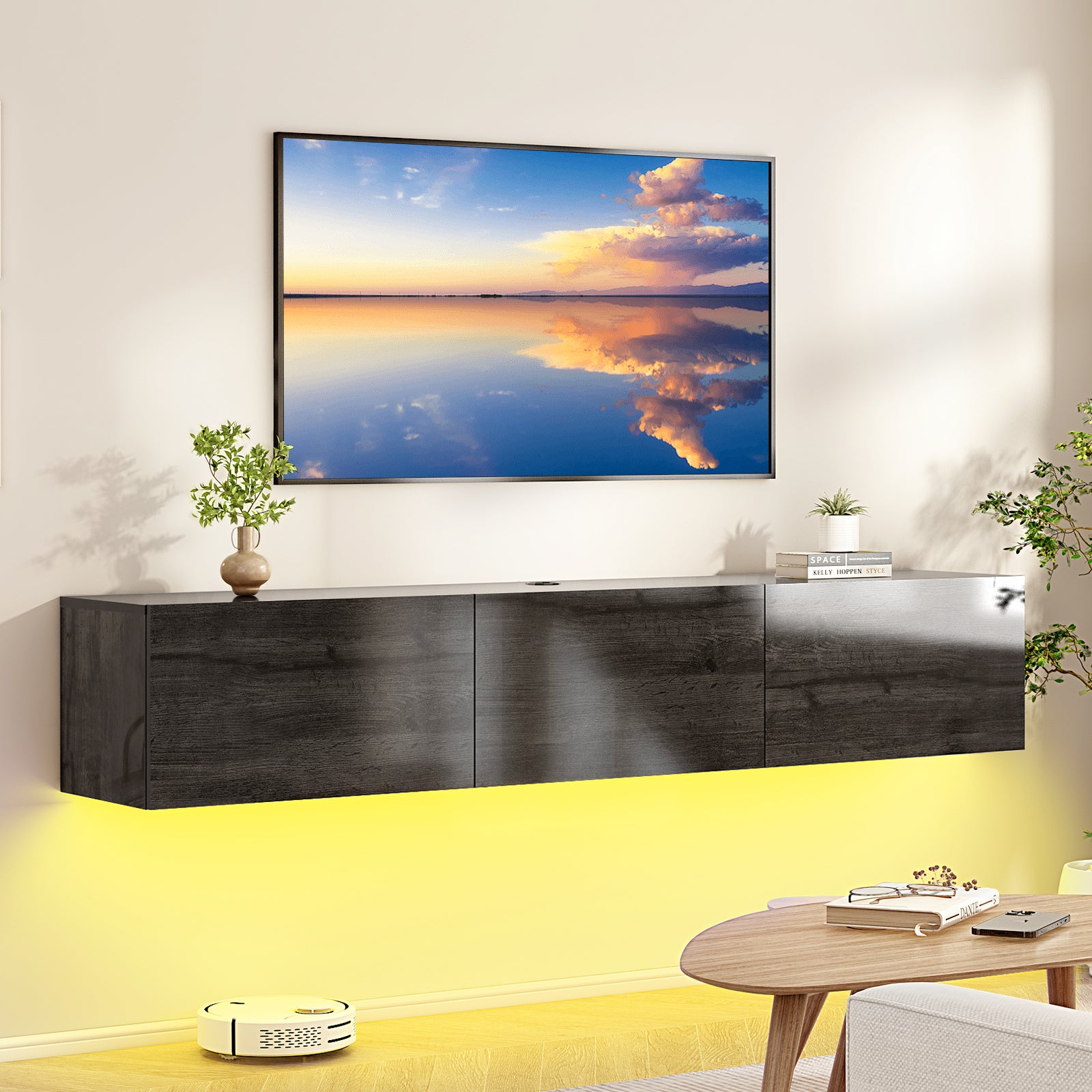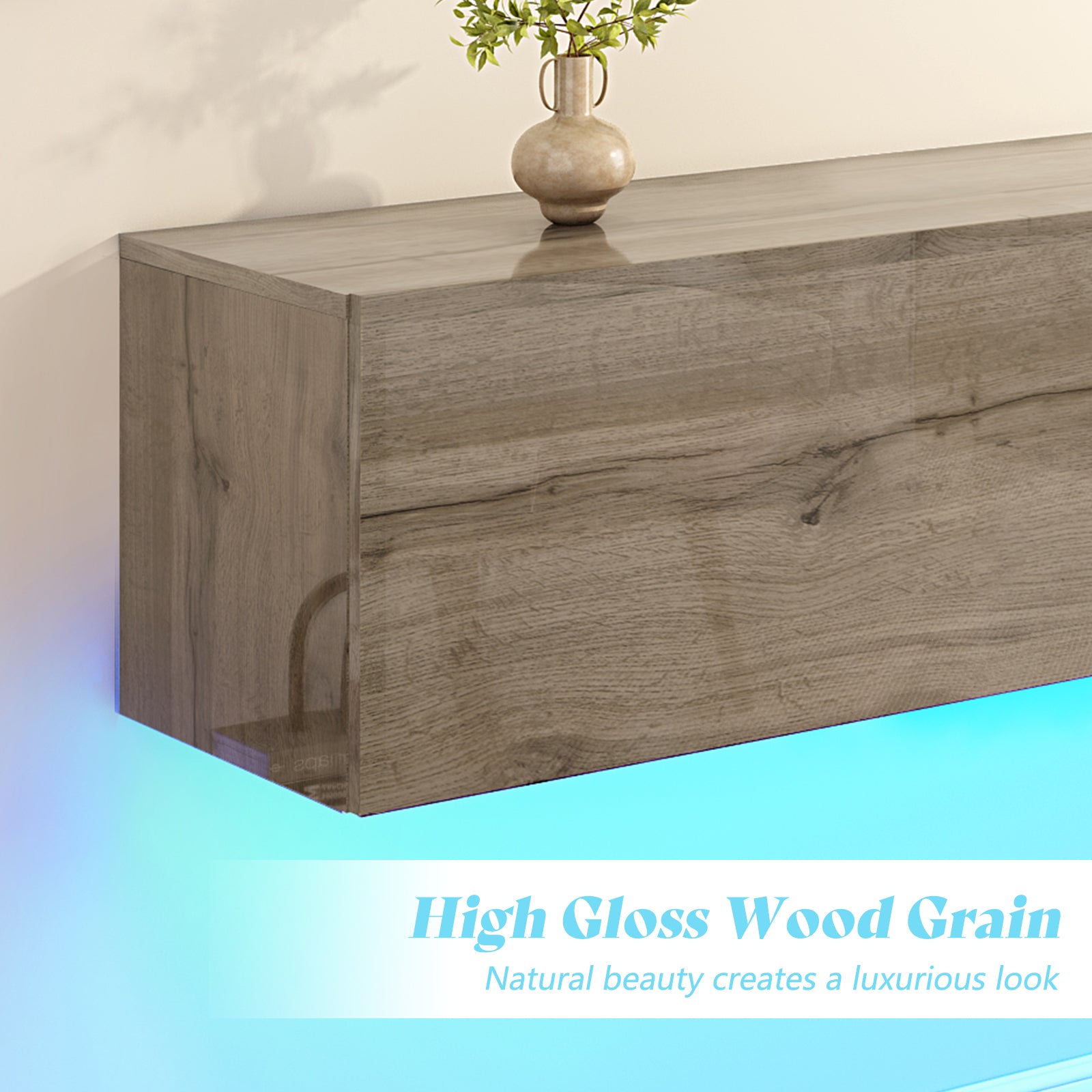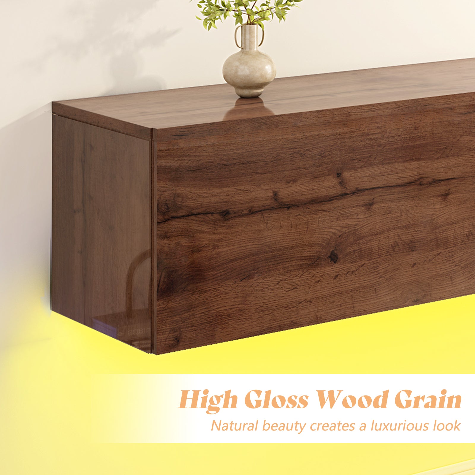 Fireplace TV Stand with 36" Electric Fireplace, 70" Modern Wood Grain High-Gloss TV Cabinet for Living Room, LED Entertainment Center with Flip-Down Doors for TVs up to 70", Black