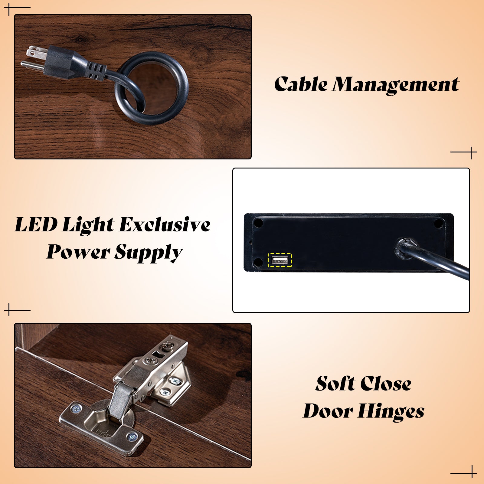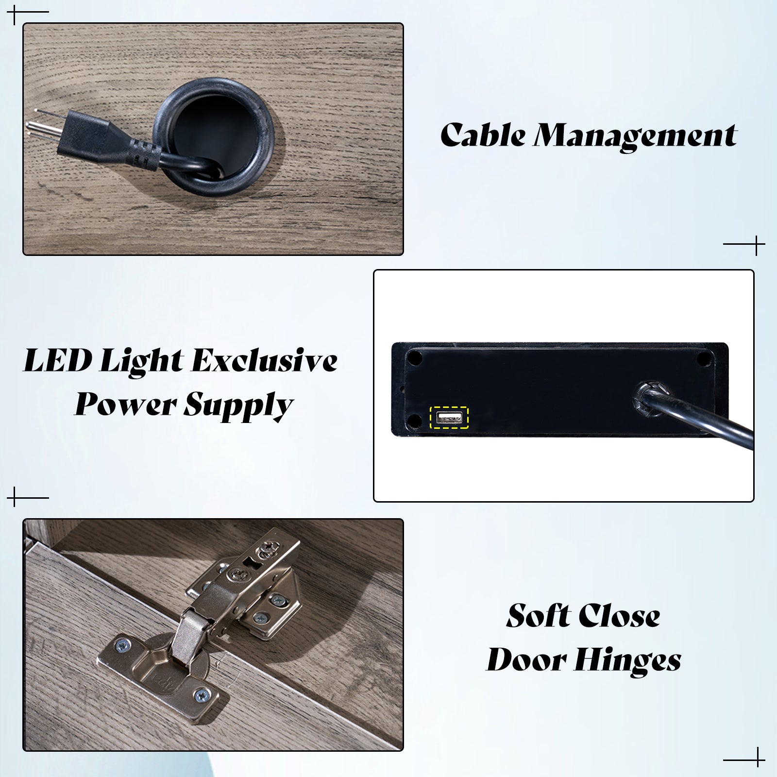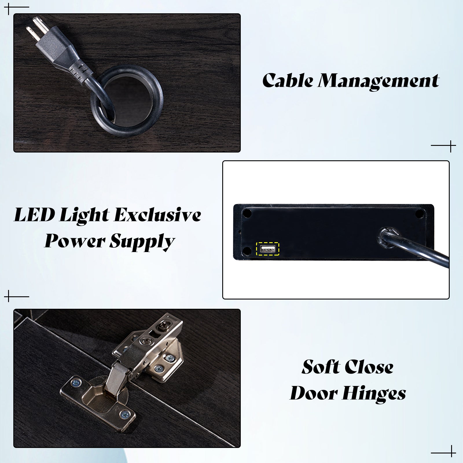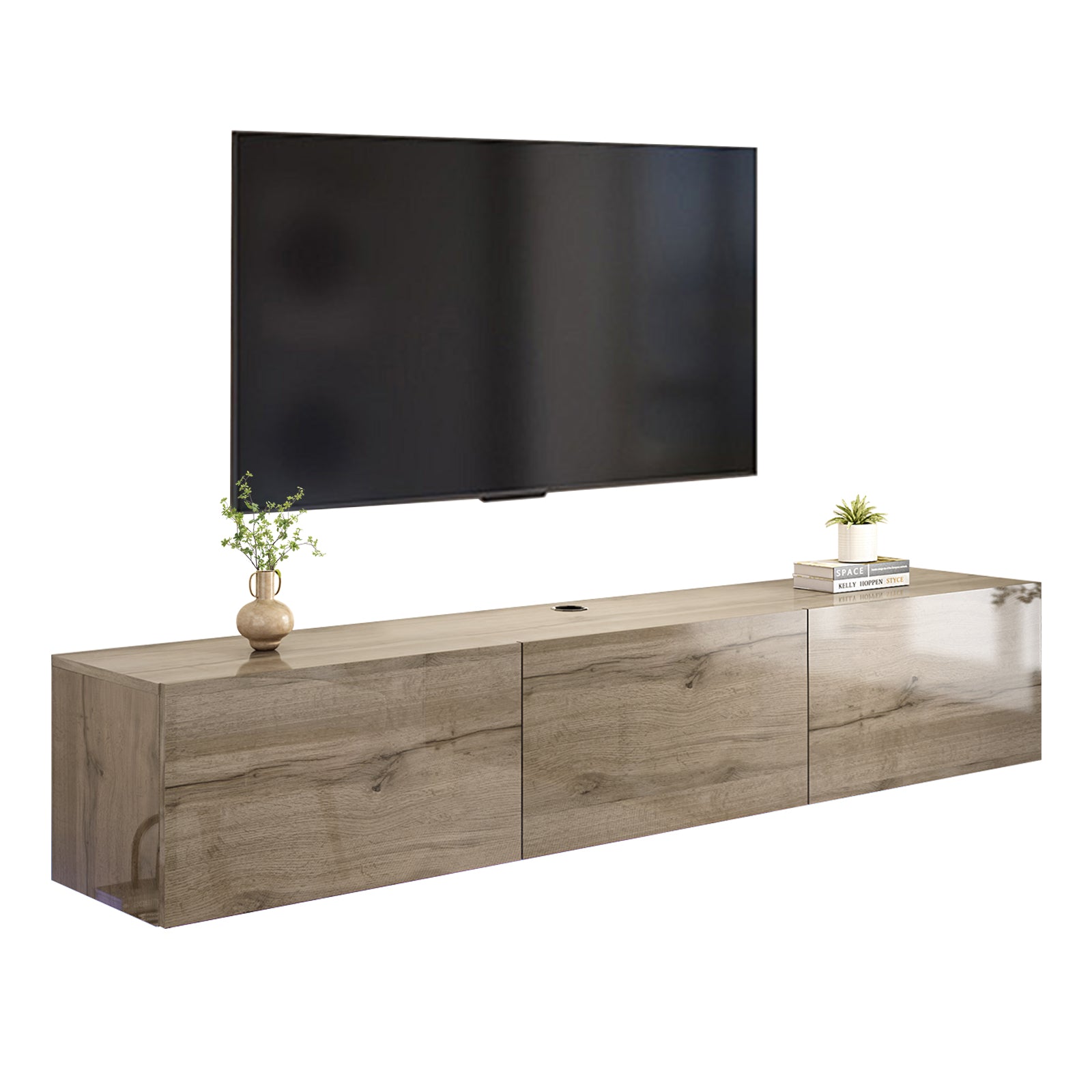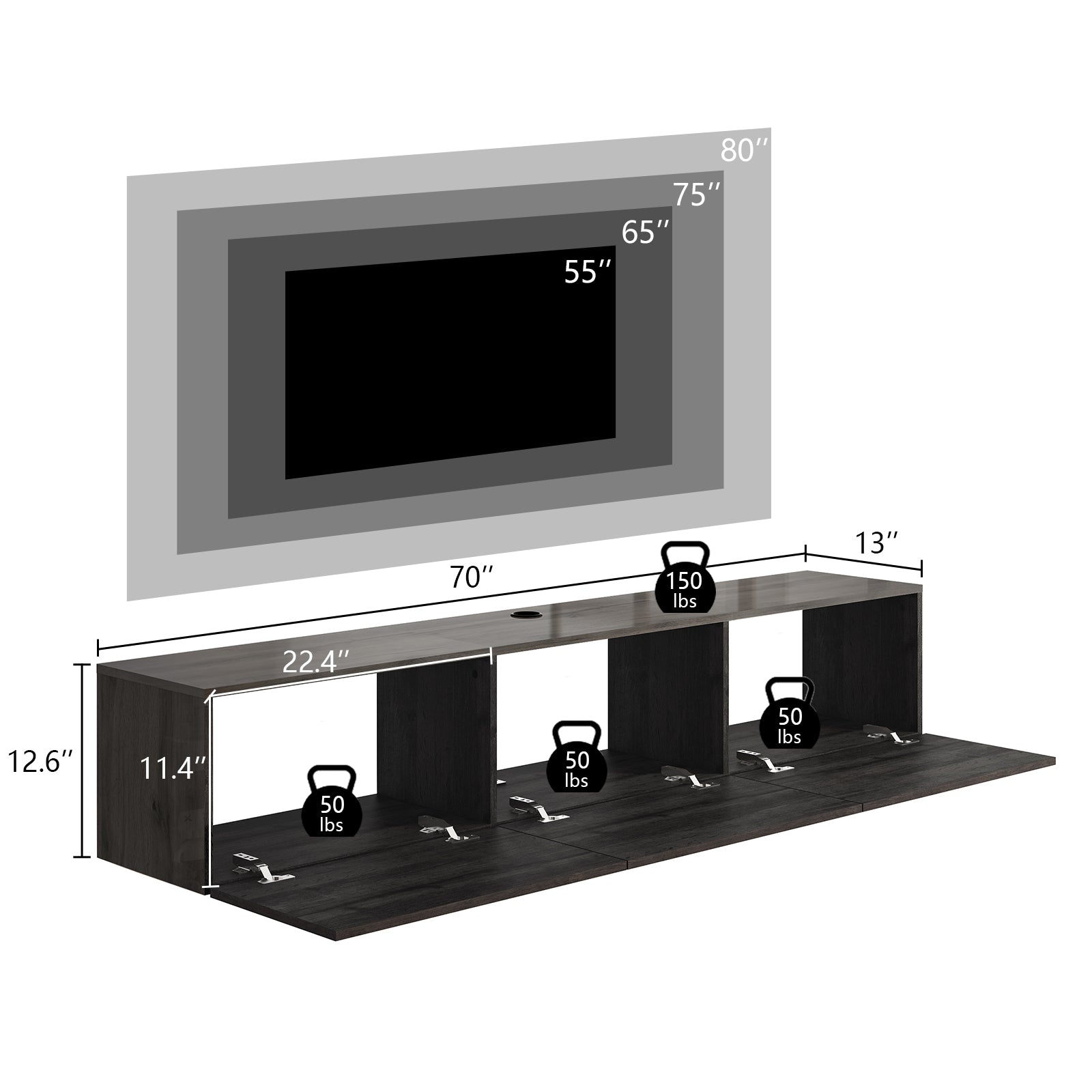 Fireplace TV Stand with 36" Electric Fireplace, 70" Modern Wood Grain High-Gloss TV Cabinet for Living Room, LED Entertainment Center with Flip-Down Doors for TVs up to 70", Black