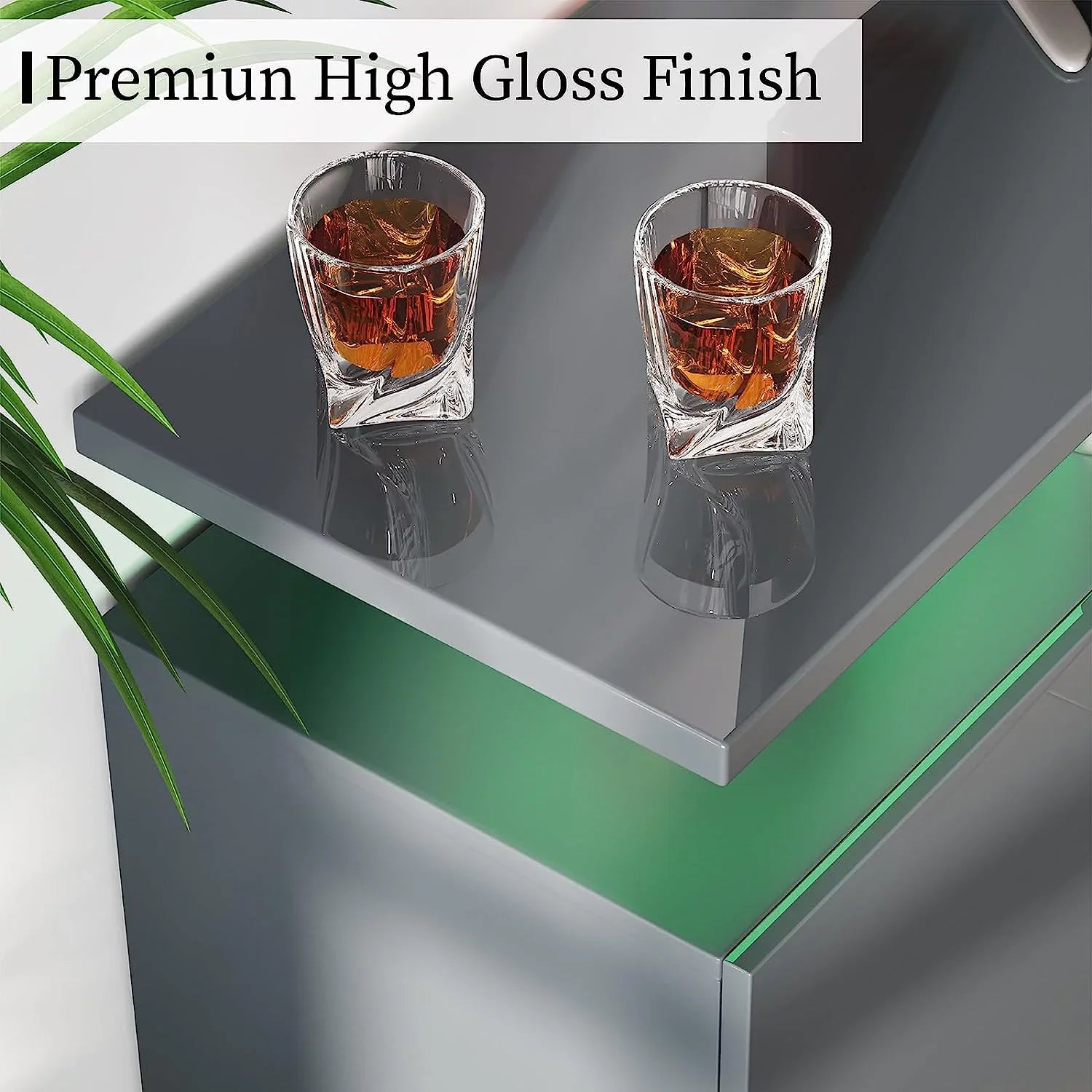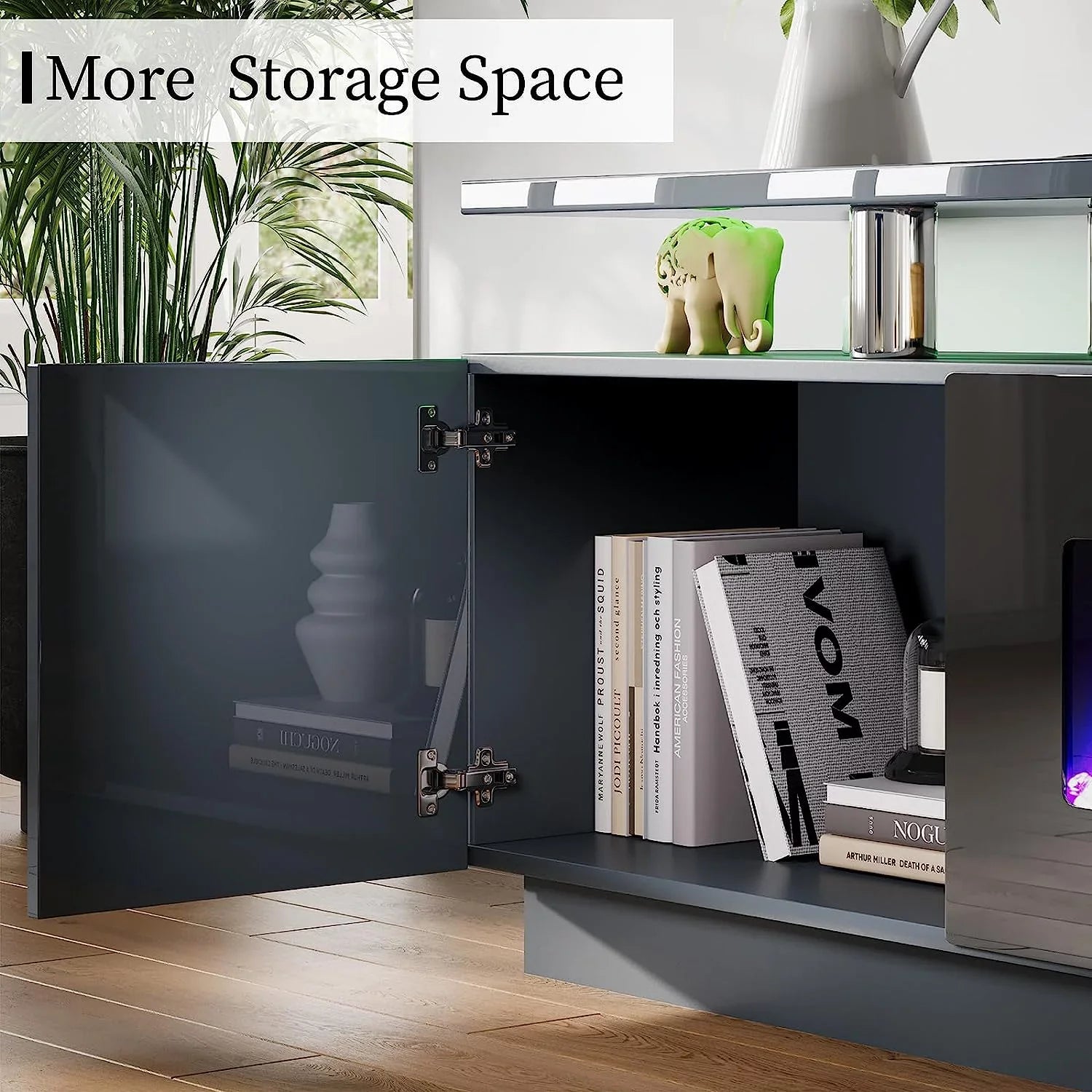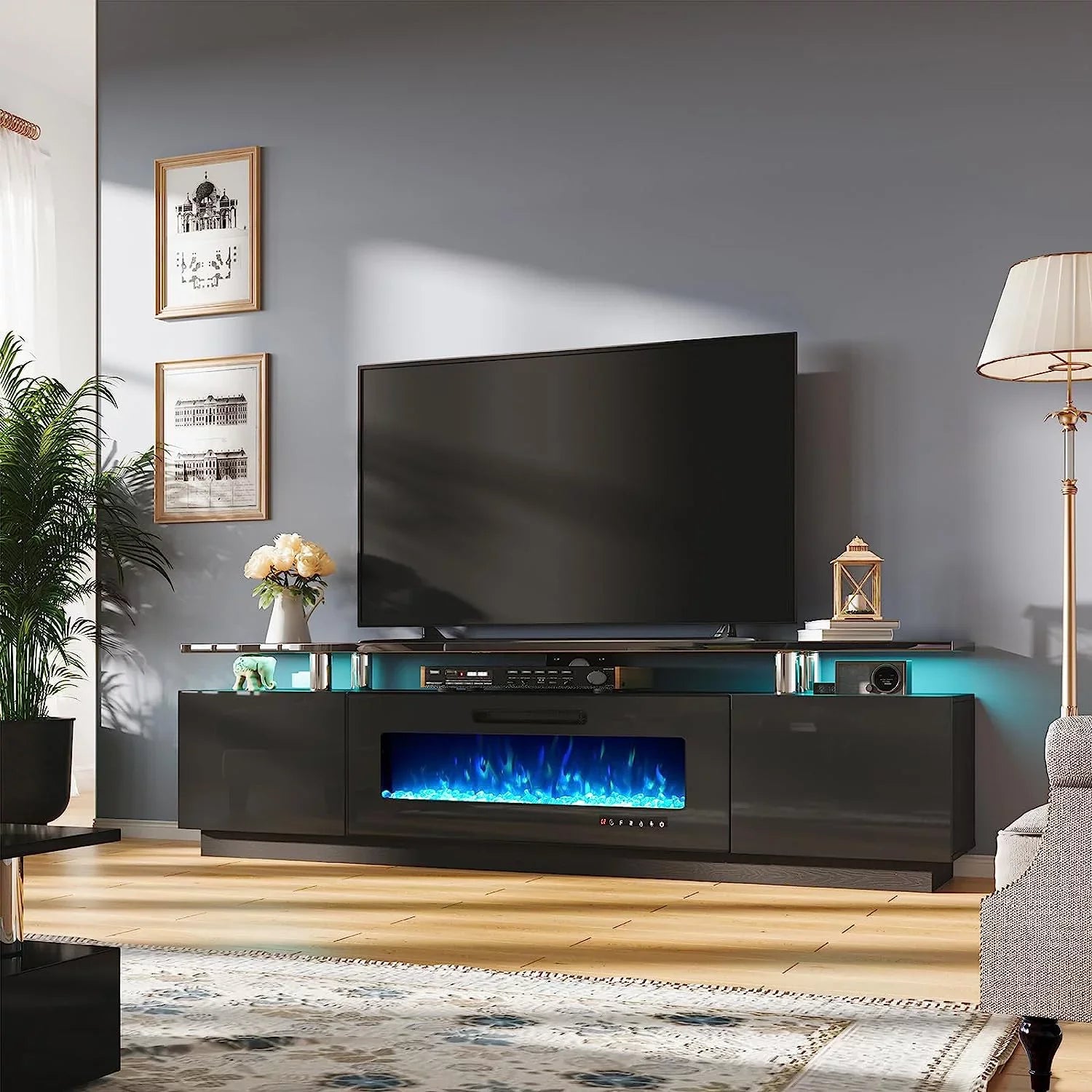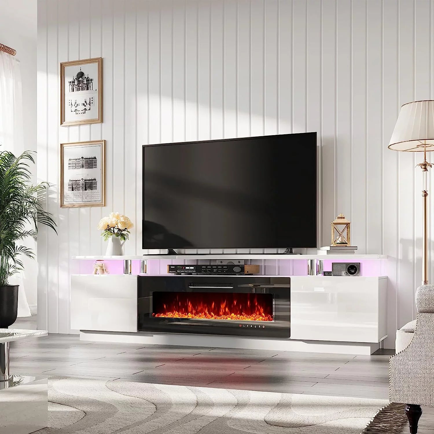 Fireplace TV Stand with 40" Fireplace, 80" Modern High Gloss Fireplace Entertainment Center LED Lights, 2 Tier TV Console Cabinet for TVs Up to 90", Cement Grey