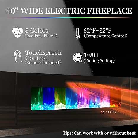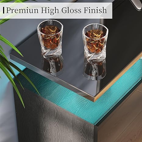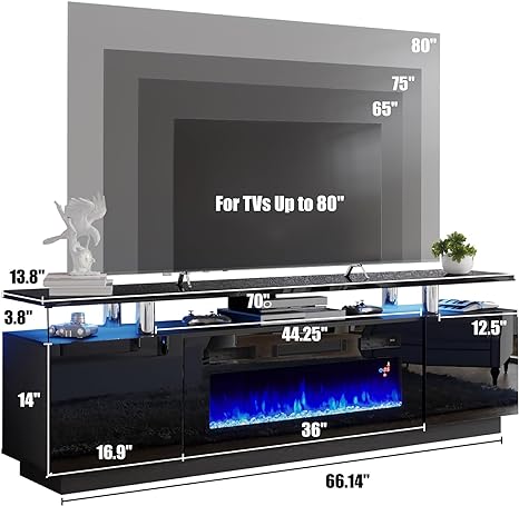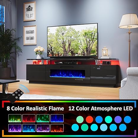 Fireplace TV Stand with 40" Fireplace, 80" Modern High Gloss Fireplace Entertainment Center LED Lights, 2 Tier TV Console Cabinet for TVs Up to 90", Obsidian Black
