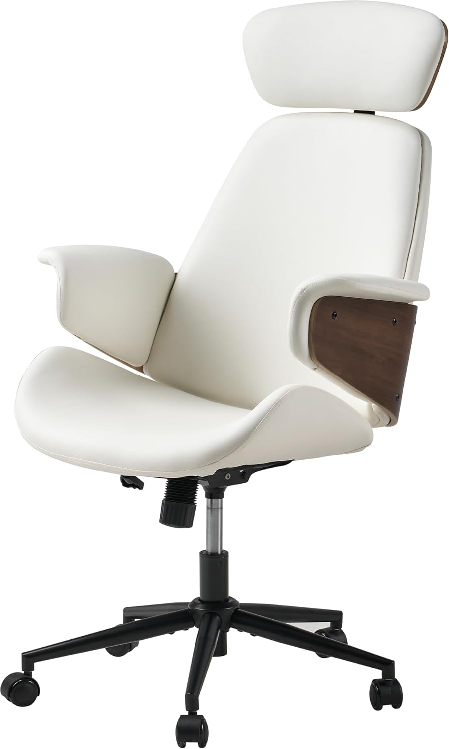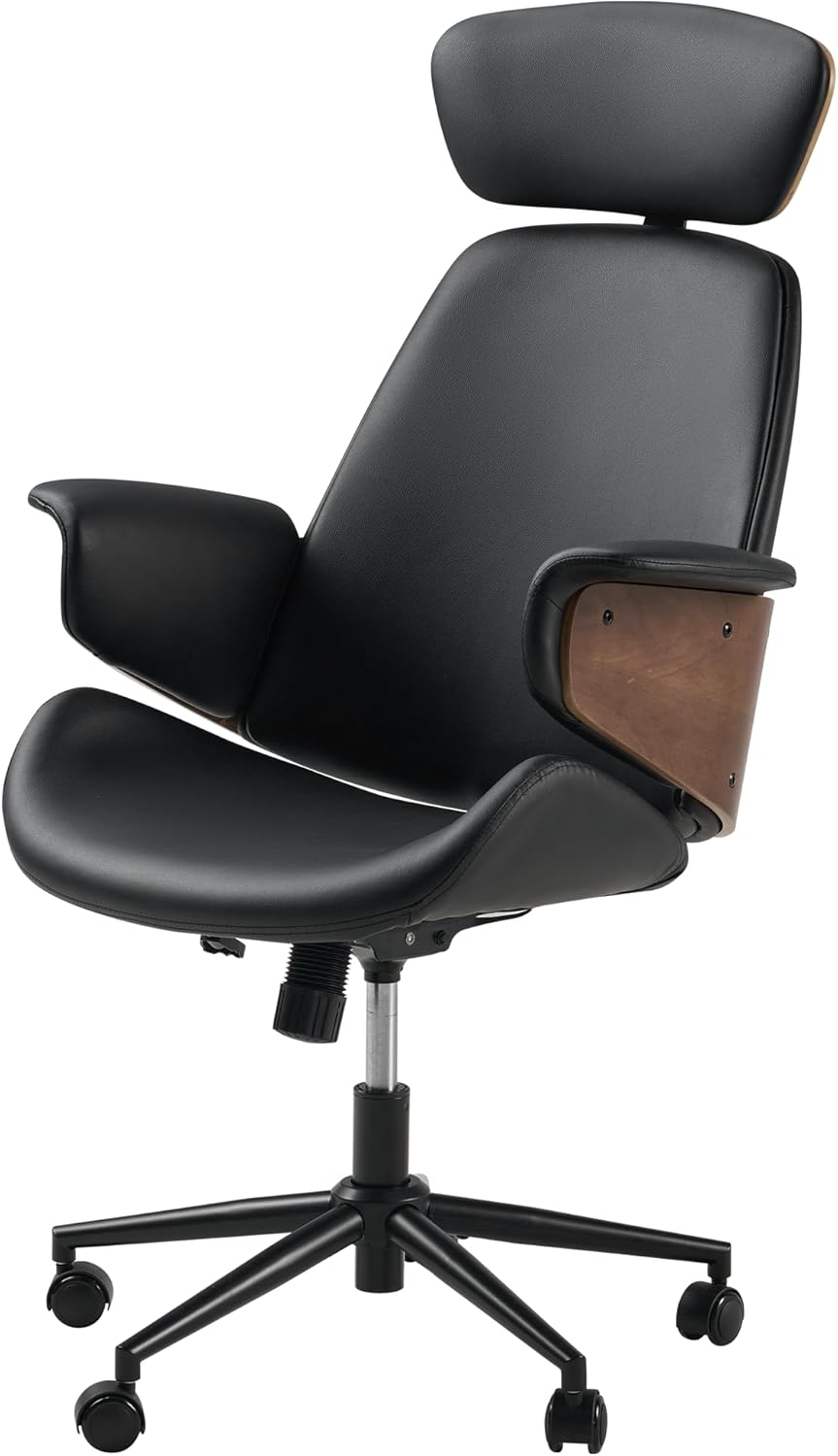 Home Office Chair with Wheels and Bentwood Arms, PU Leather Swivel Desk Chair with Lumbar Support and Headrest, Height Adjustable Modern Computer Chair for Office, Study