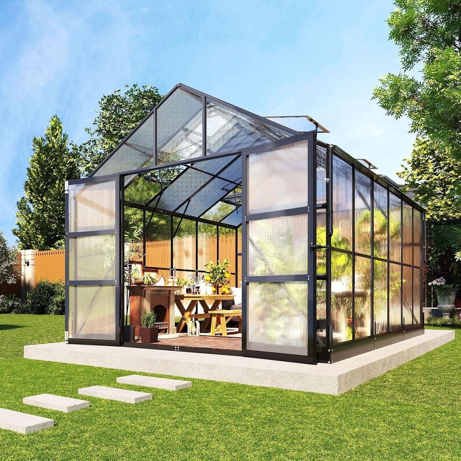 - 【Premium Panels】 Unbreakable polycarbonate panels with UV protective coating ensure your plants are protected from 99.99% of harmful solar exposure, while also creating a comfortable environment for optimal growth.