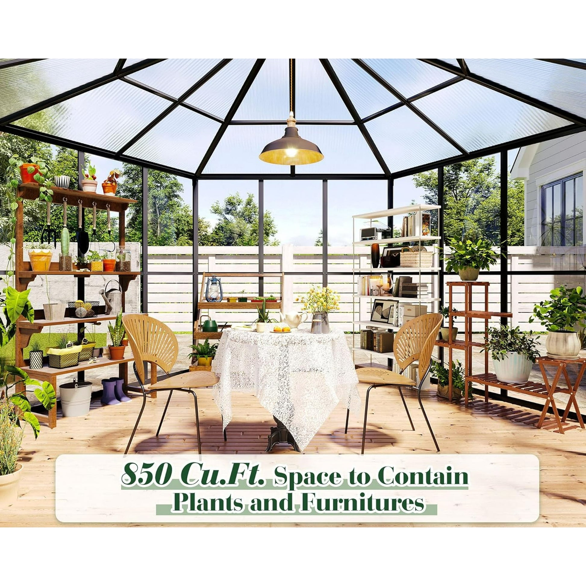 - Adequate indoor Space: The 6ft high aluminum greenhouse can be used as a plant room, study, or dining area, customizable with furniture and decor to suit your needs