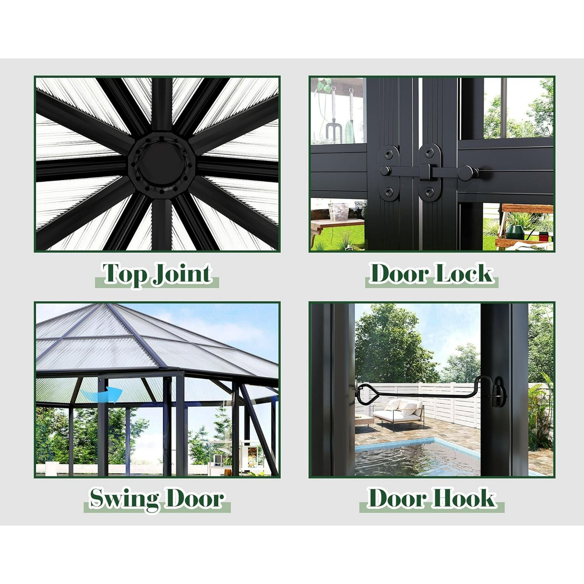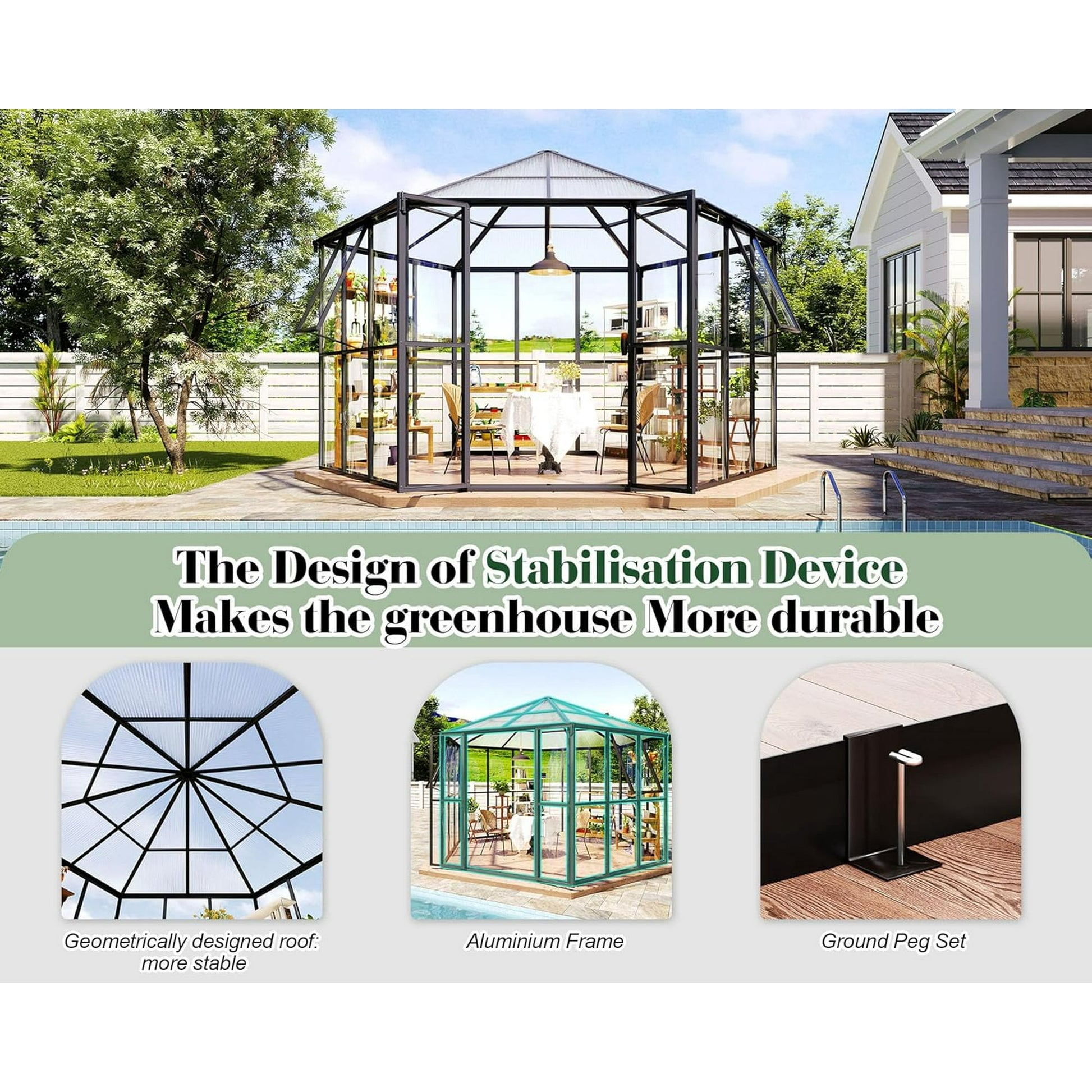 Jocisland 12x10x8 FT Hexagonal Greenhouse with Quick-Connect Fittings, Greenhouses for Outdoors Garden Backyard with 2 Swing Doors, Walk-in Aluminum Greenhouse with 2 Vents, Black