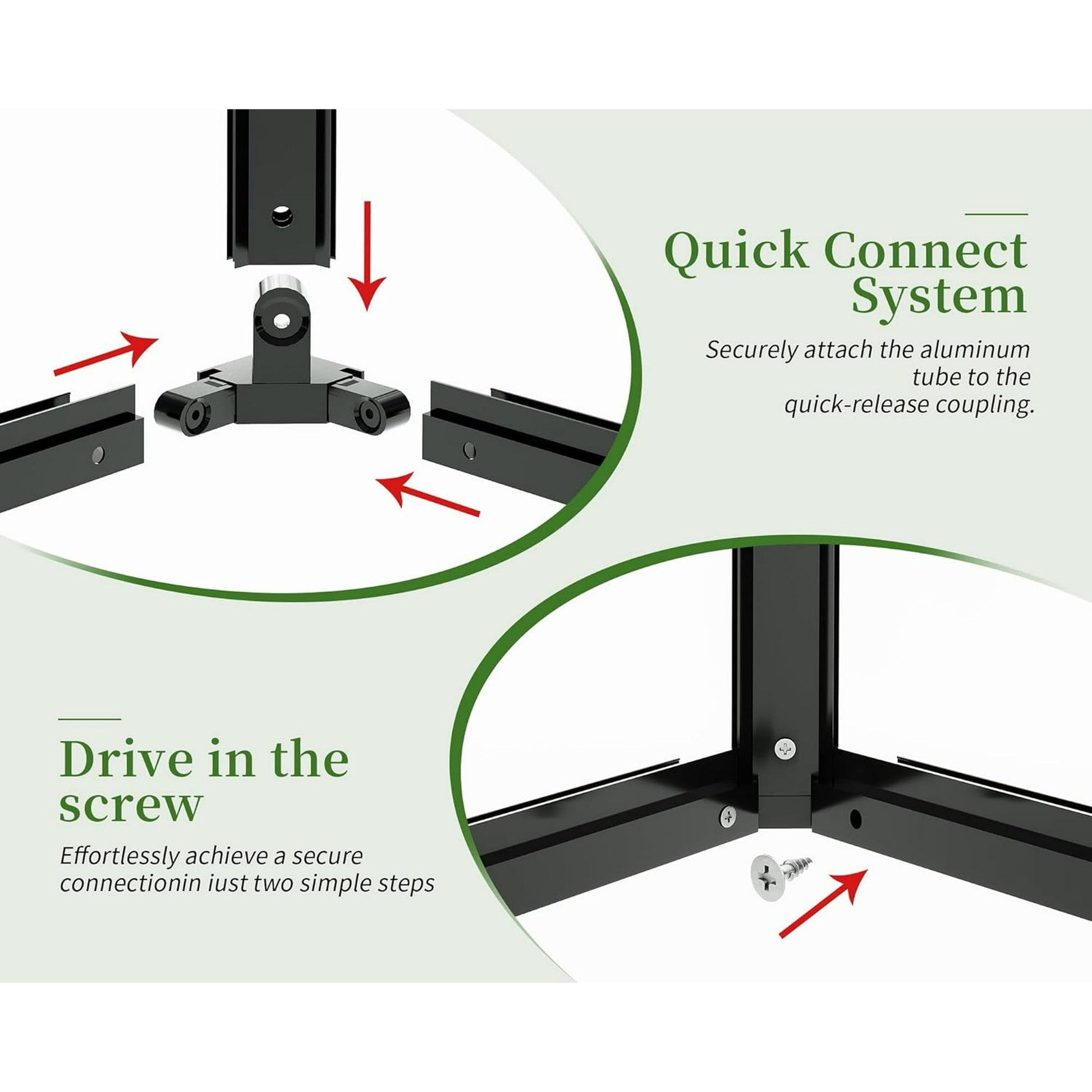 - 【Quick Connect System】Three skilled enthusiasts can assemble this greenhouse kit in just 5 hours. Introducing patented technology, revolutionizing greenhouse connectivity to save you 50% time. Gone are the days of tedious setups. With a simple push and locking screw, our Quick Connect ensures a reliable, secure, and swift link-up.