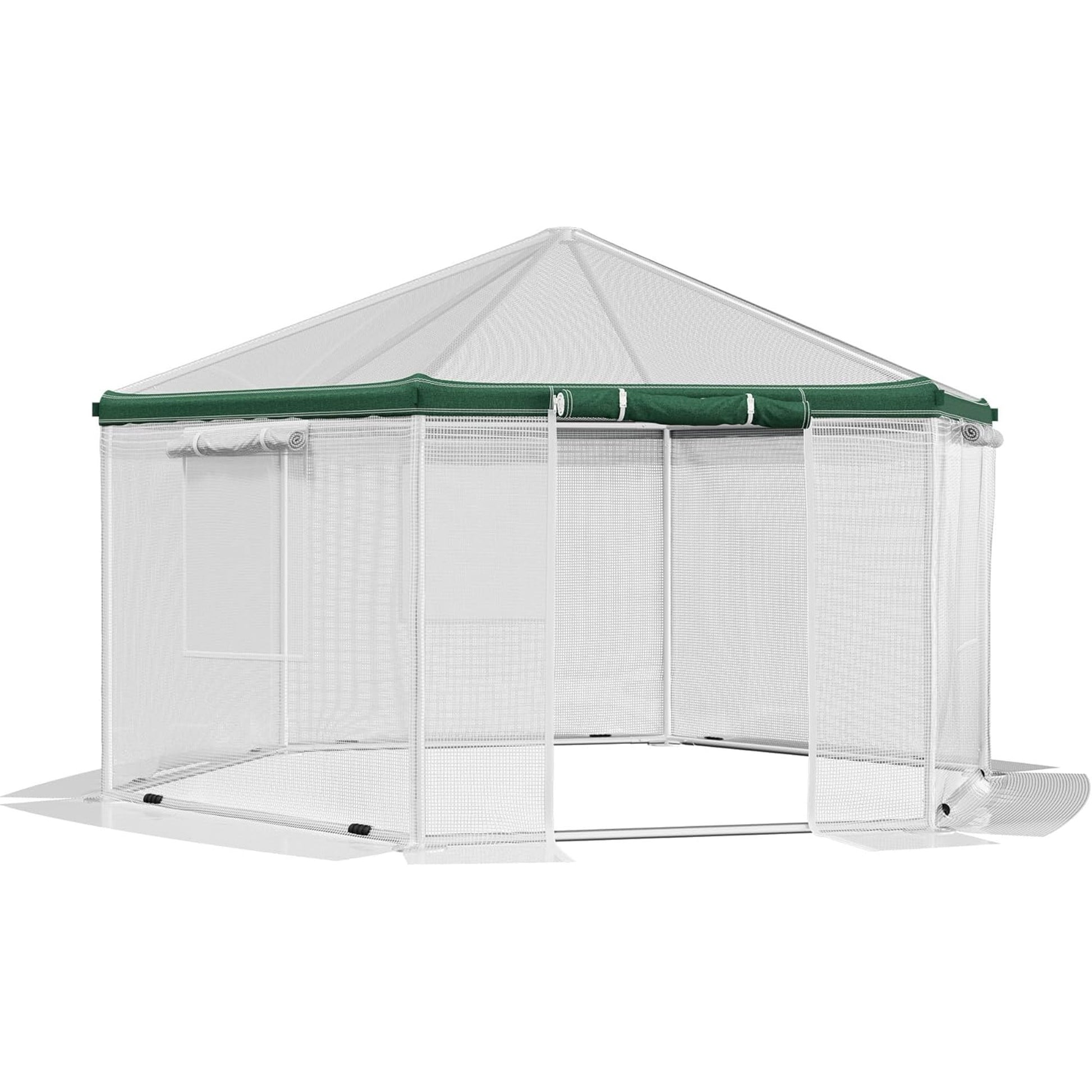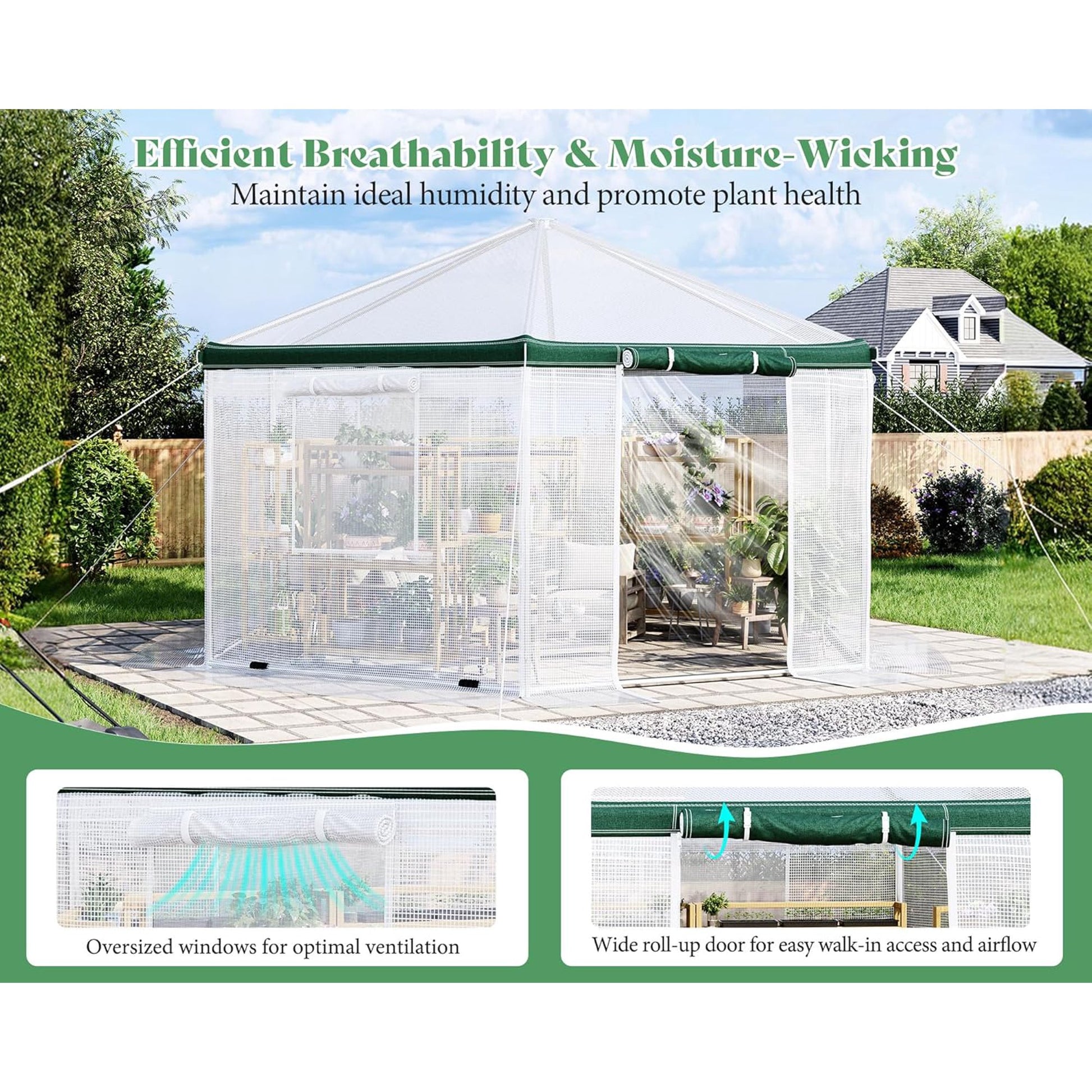 Jocisland 13.5x13.5x9 FT Hexagonal Walk-in Greenhouse for Outdoors, Heavy-Duty Greenhouse with Windbreak Ropes, Waterproof PE Cover, Ground Stakes, Tunnel Green House for Garden, White/Green