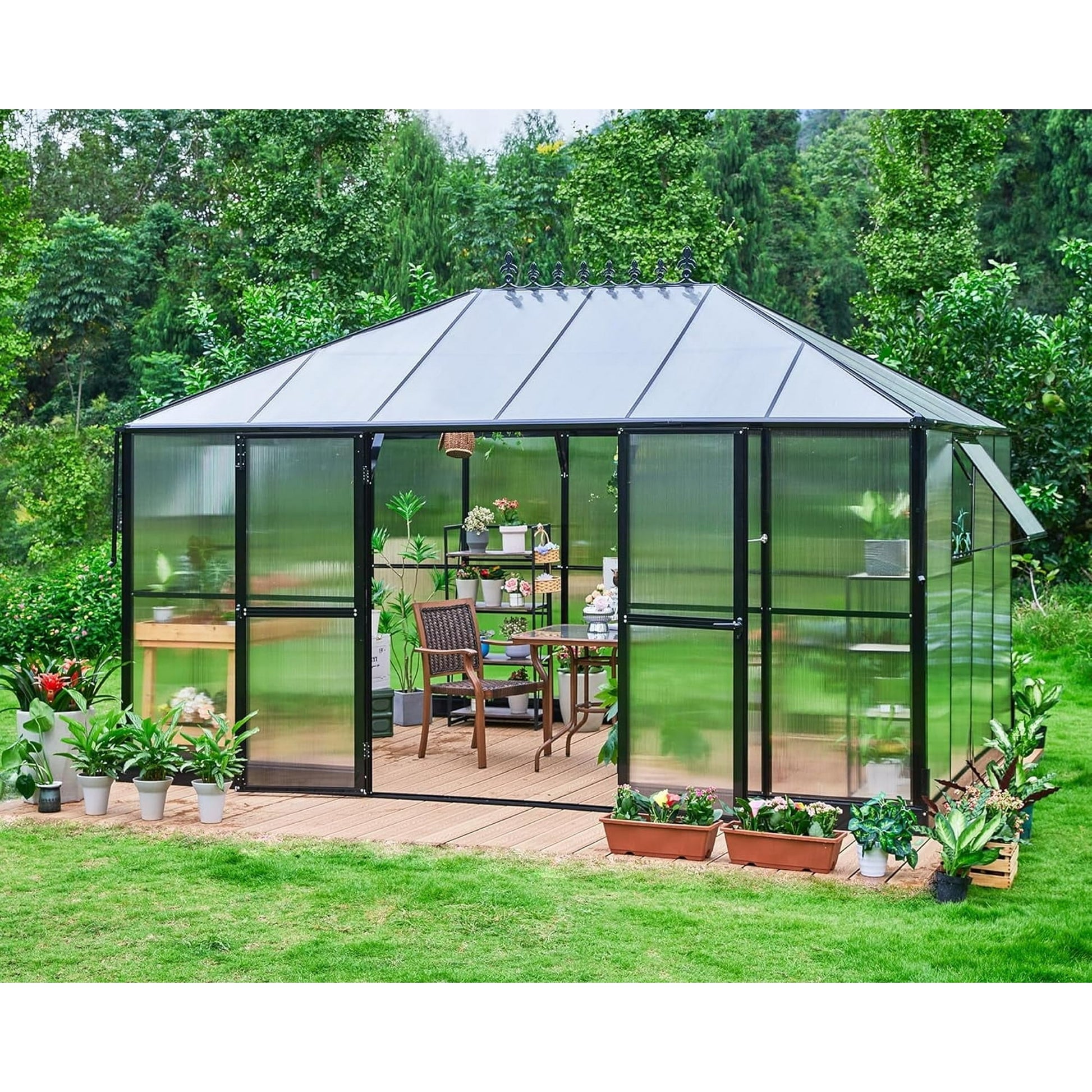 - 【Versatile Space】850 cu. Ft. to create a perfect warm environment for your personal plants. Transform your polycarbonate greenhouse it into a dynamic party room or a versatile storage area by adding furniture.