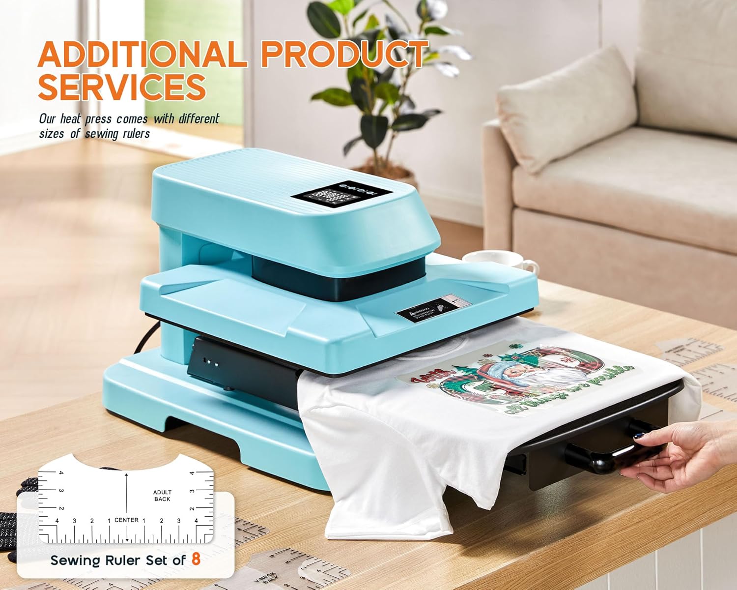 - [MULTIFUNCTIONAL-USE & ATTACHMENT] The heat press machine for t shirts comes with 8pcs sewing rulers and is also suitable for other uses such as handbags, wooden signs and more