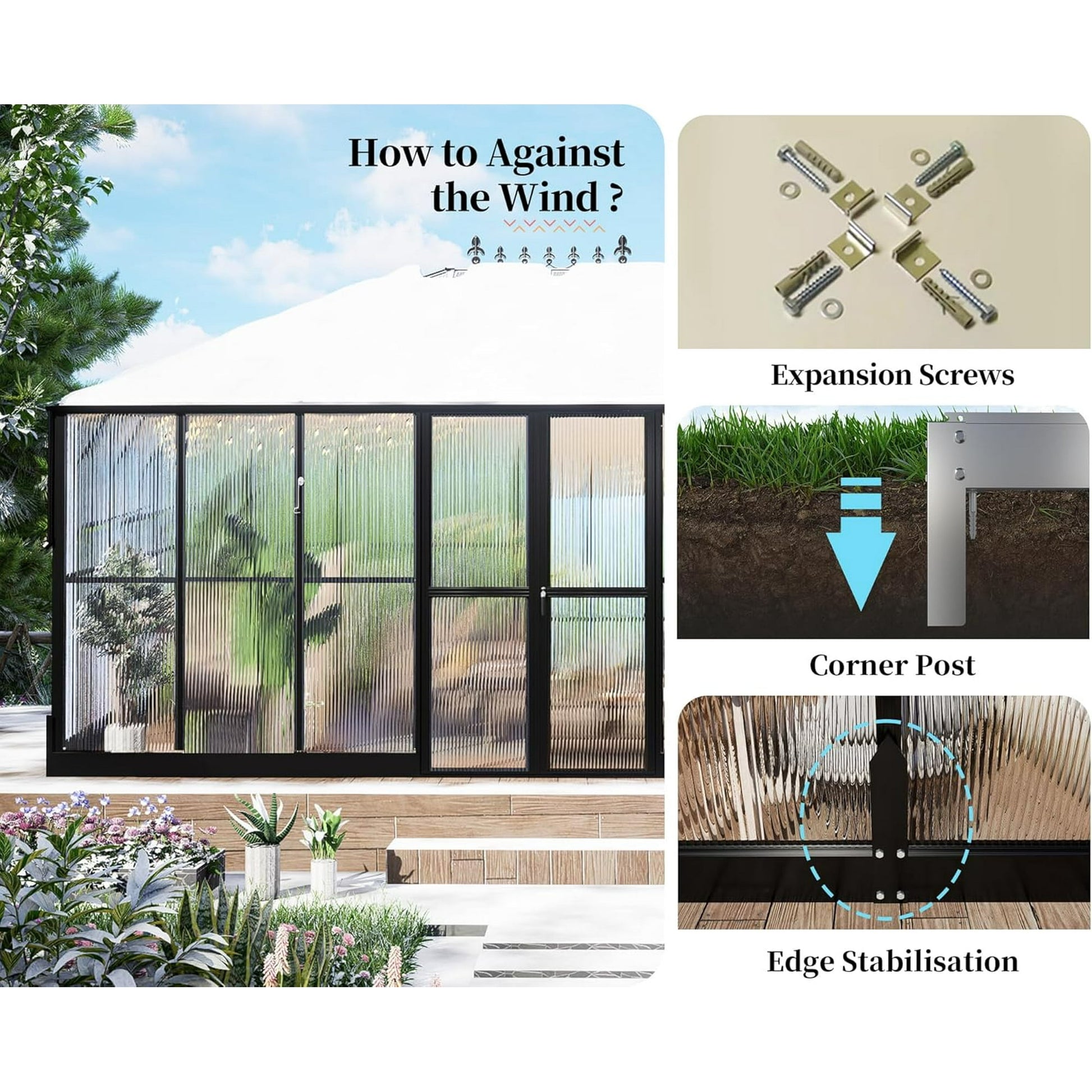 - Enhanced Stability: Our heavy duty greenhouse comes with added reinforcement screws and ground stakes, ensuring it stands firm in all weather conditions, safeguarding your plants against wind and weather