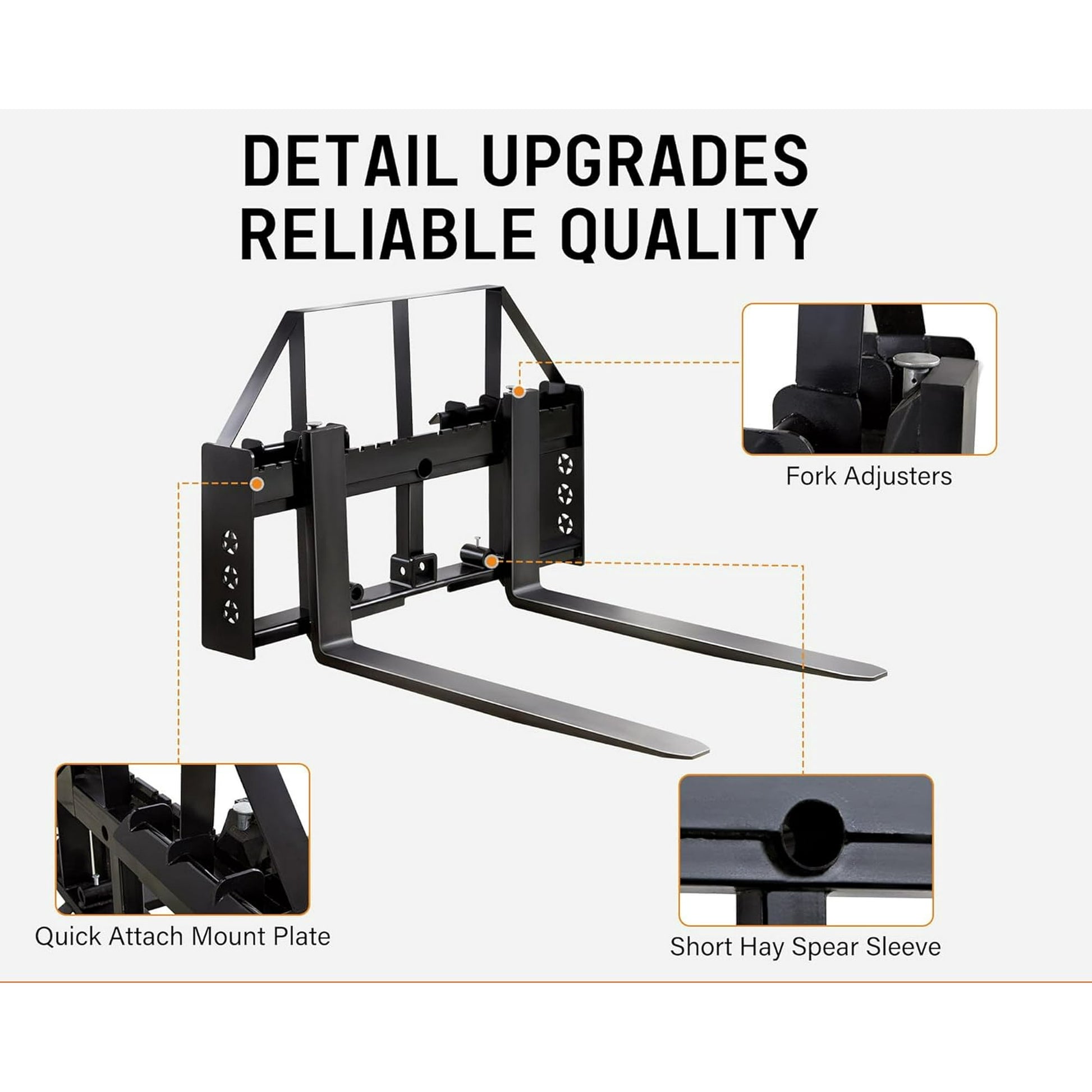 - HEAVY-DUTY CONSTRUCTION: Built to support a load capacity of up to 2500 lbs, these skid steer forks are crafted with high-strength materials, ideal for demanding tasks