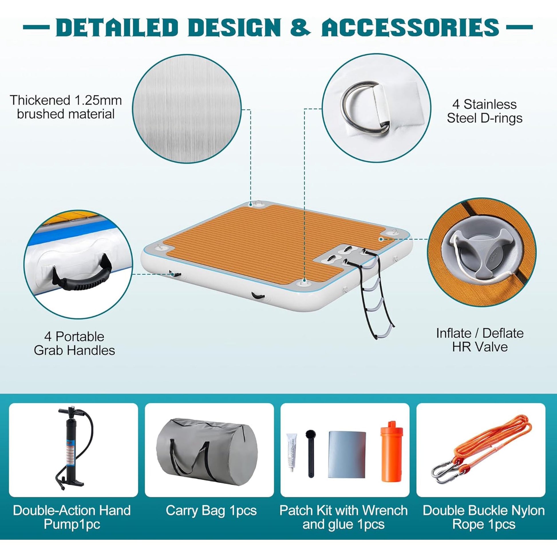 - 【PERFECT FOR VARIOUS SETTINGS】The floating platform offers endless possibilities. Use it for beach relaxation, poolside fun, lake fishing, or as a docking station for paddleboards and jet skis, enhancing every water activity!
