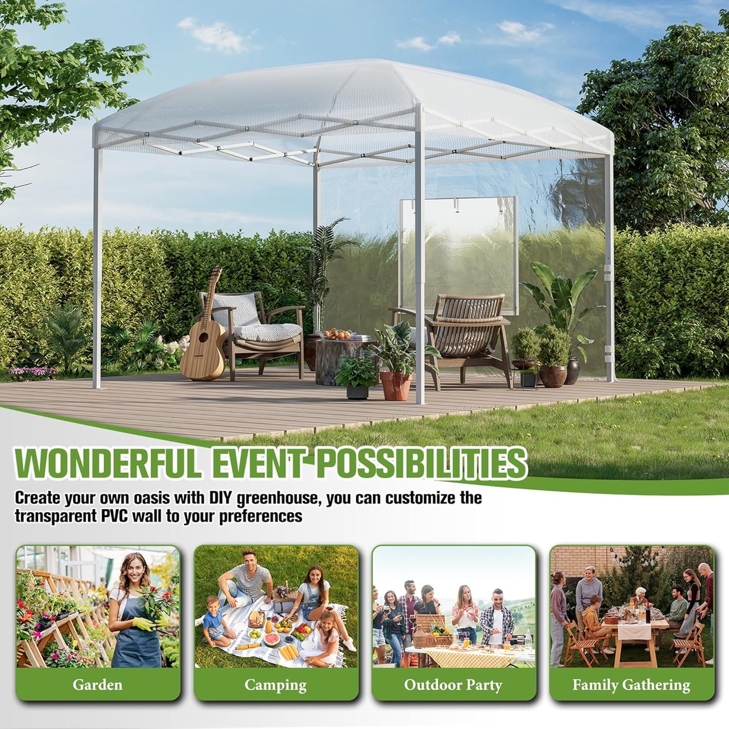 Jocisland 9.7x9.7×8.5 FT Upgraded Pop-up Greenhouses for Outdoors Indoor with Adjustable Reinforced Frame, Portable Walk in Green house with Roll-up Zipper Door, Windows and PE Cover, White