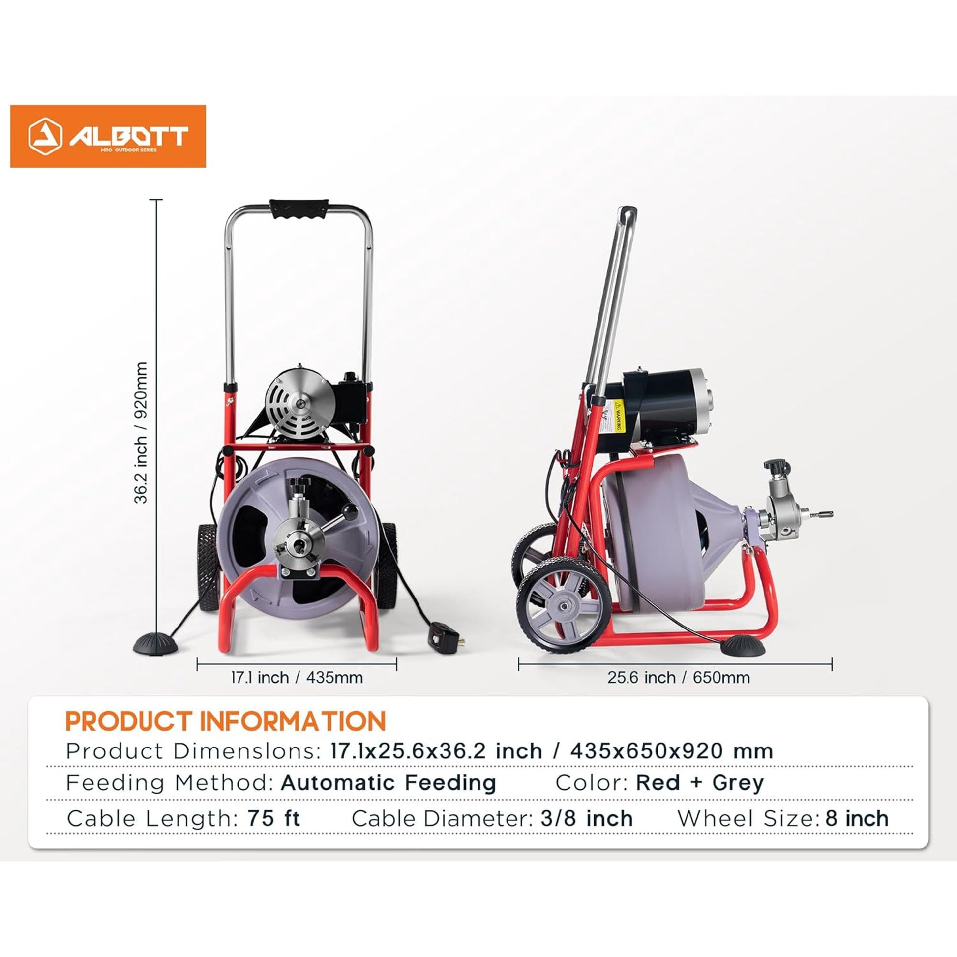 - Purpose-built for User Satisfaction: Electric snake for plumbing comes with wheels, allowing for easy maneuverability on stairs and uneven surfaces. Additionally includes a casing and handrail offers a comfortable grip