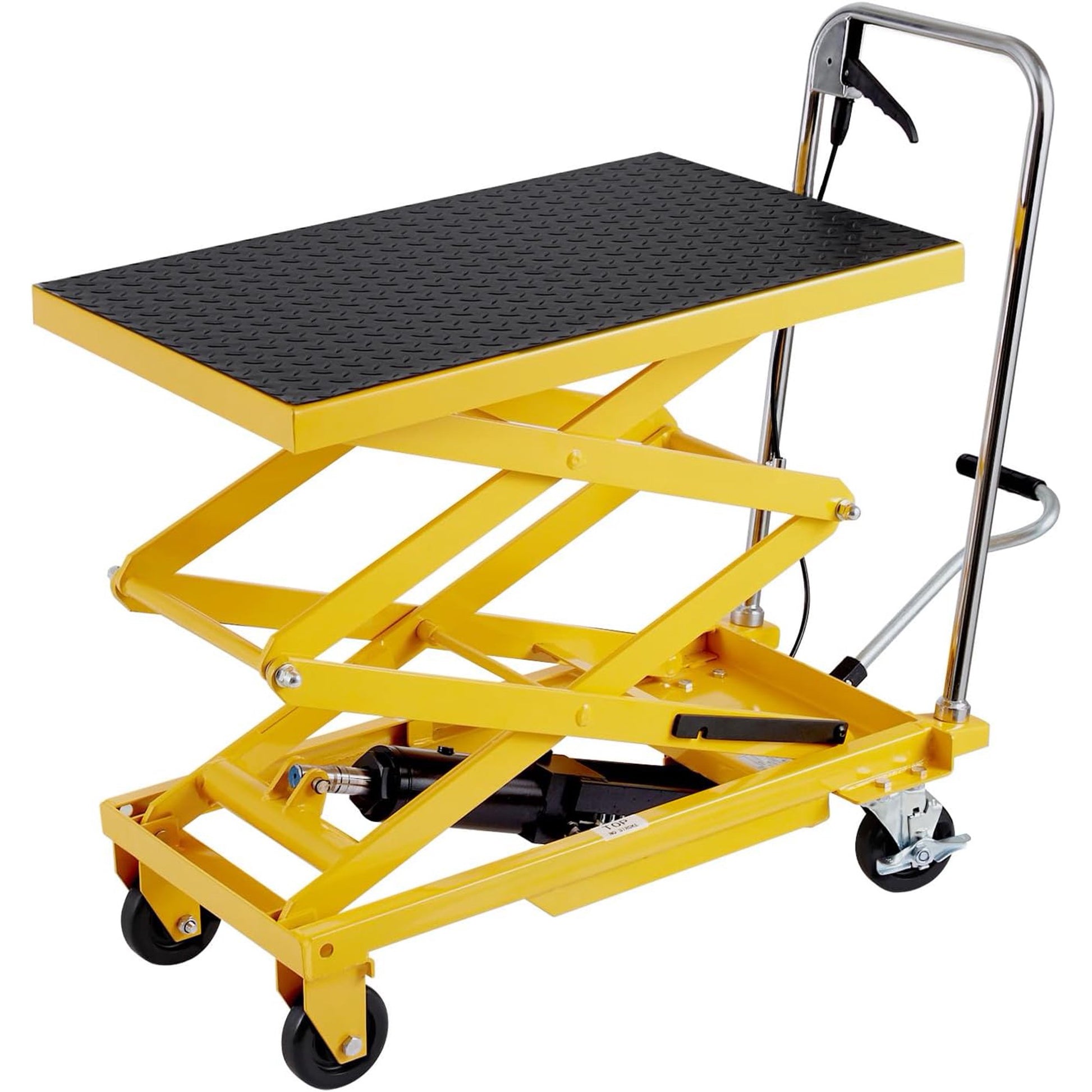 Jocisland Hydraulic Lift Table Cart, 330lbs Capacity 50" Lifting Height, Double Scissor Lift Table with 4 Wheels and Non-Slip Pad, hydraulic lift table for Material Handling, Yellow