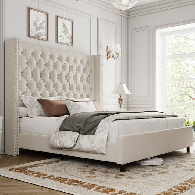 PLAUIN Bed Frame with 61.4" Tall Headborad and Deep Button Tufted,No Box Spring Needed, Velvet Upholstered