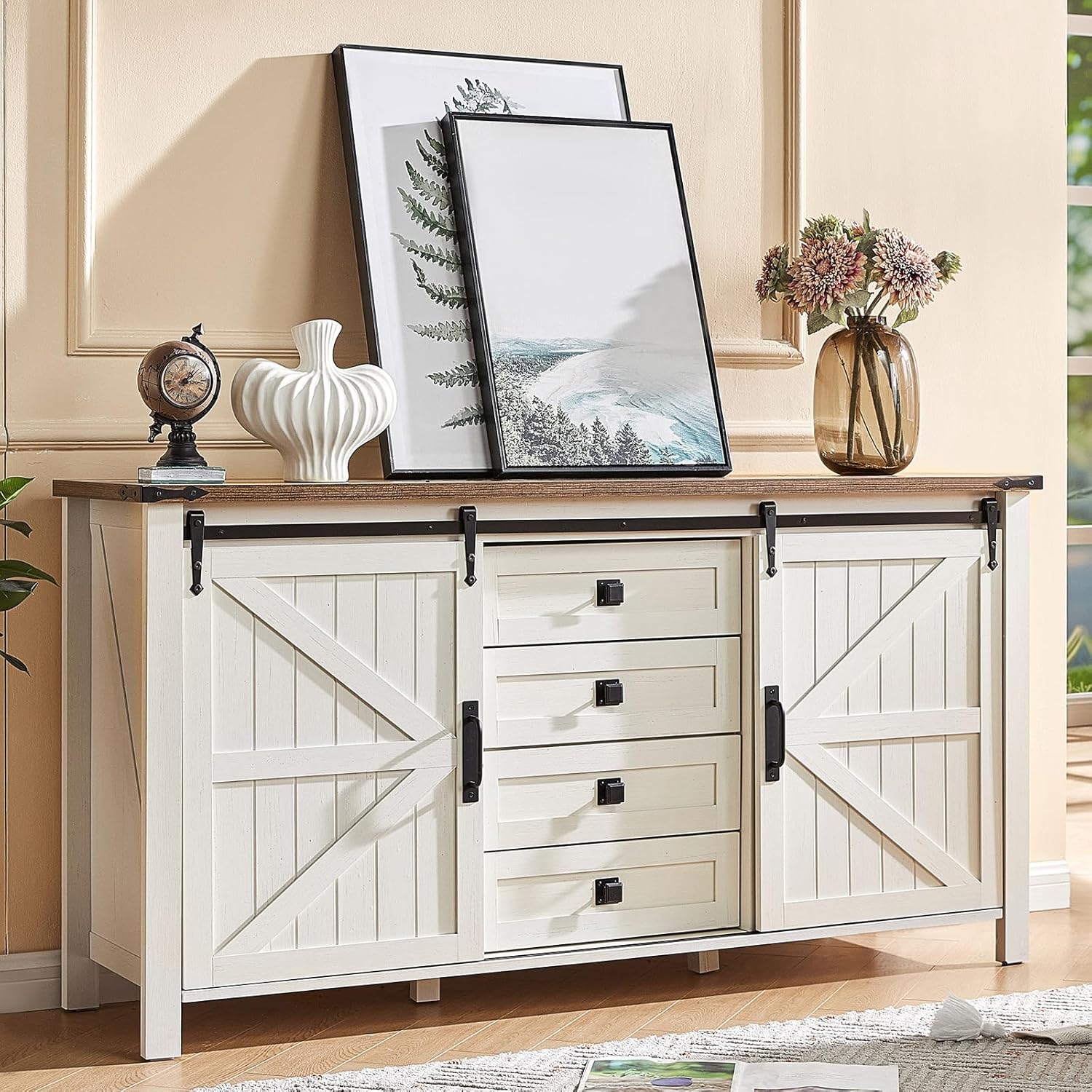 Sideboard Buffet Cabinet with Sliding Barn Doors & 4 Drawers for Dining Living Room, White