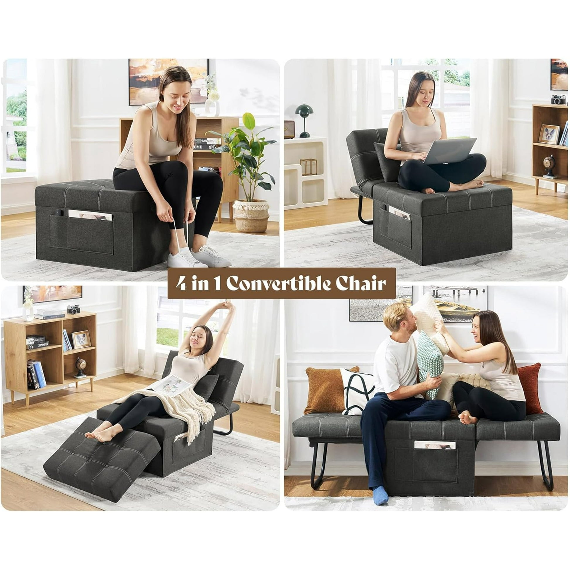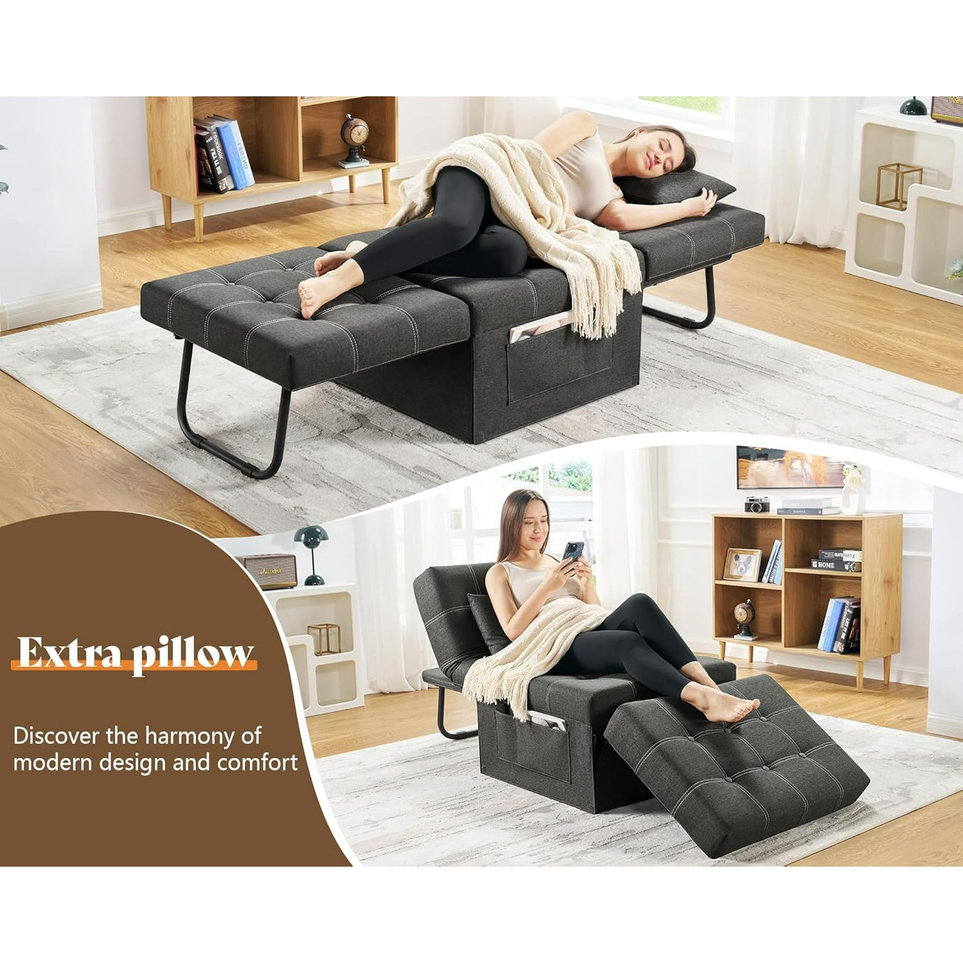 Sofa Bed, 4 in 1 Folding Bed with Adjustable Backrest, Convertible Sofa Bed- Sleeper Chair for Living Room, Apartment, Dark Grey Linen Couch