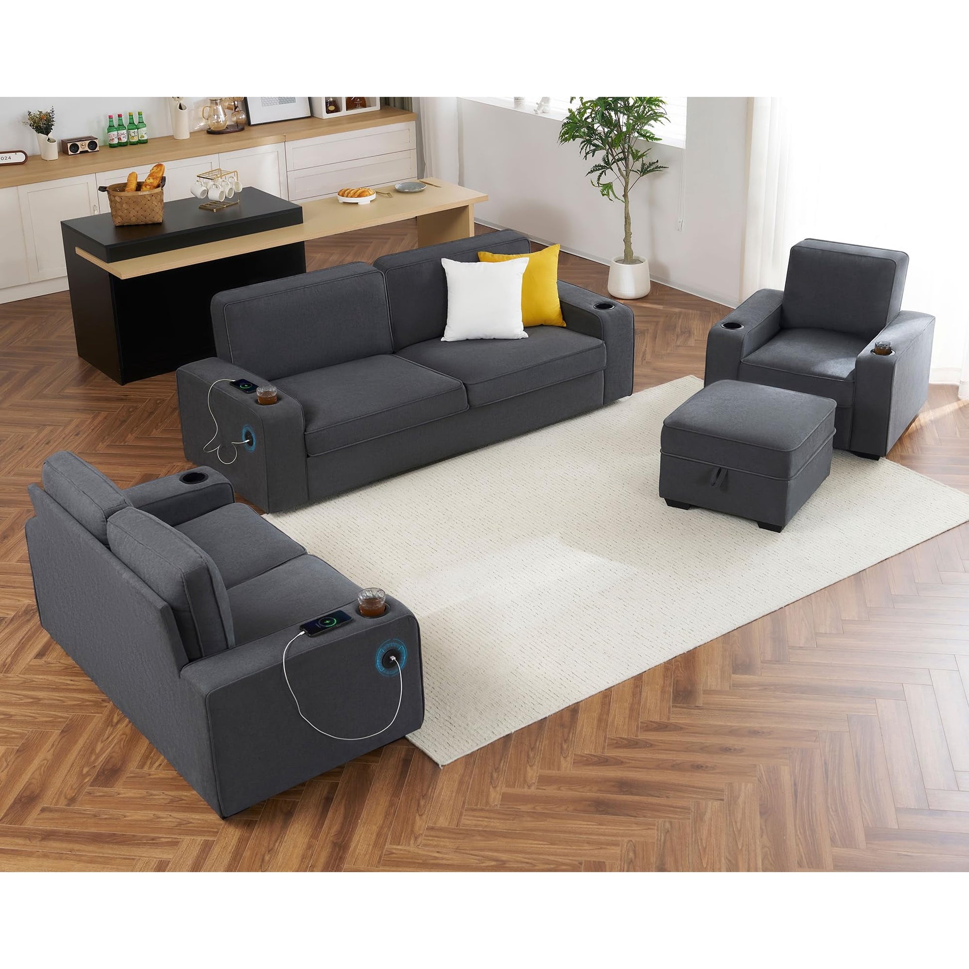 Sofa, Modern Couch with Deep Seat, Ottoman Sofa- Comfy Couch for Living Room Apartment(Charcoal Grey Chenille)