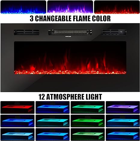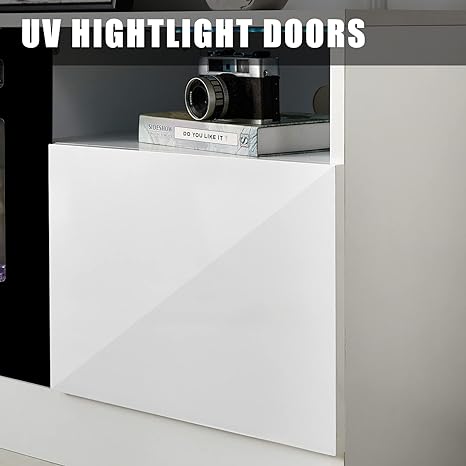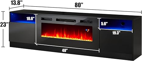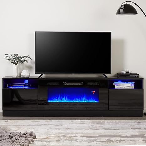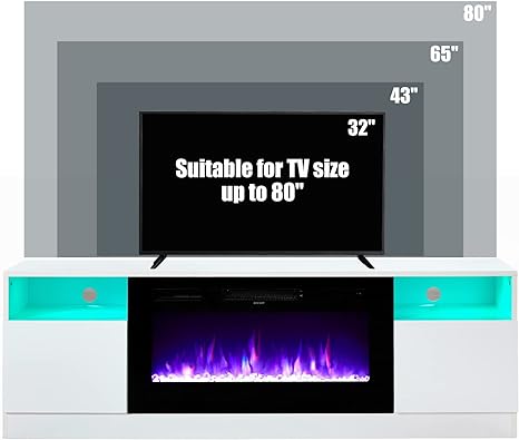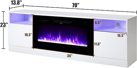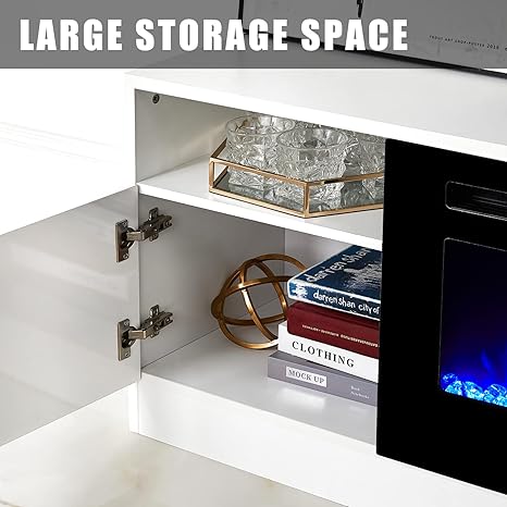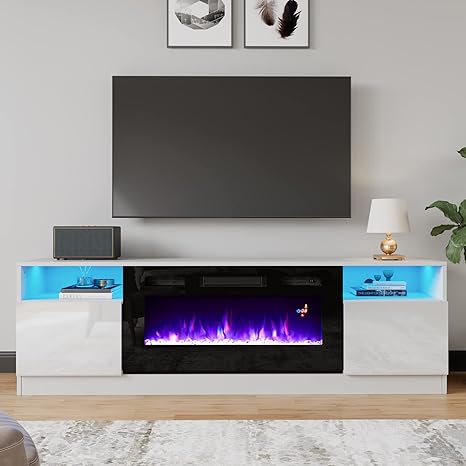 TV Stand with Fireplace, LED Light Entertainment Center with 36" Electric Fireplace, 70" Modern Wood Entertainment Stand with Highlight Storage Cabinet for TVs up to 80", White & Black