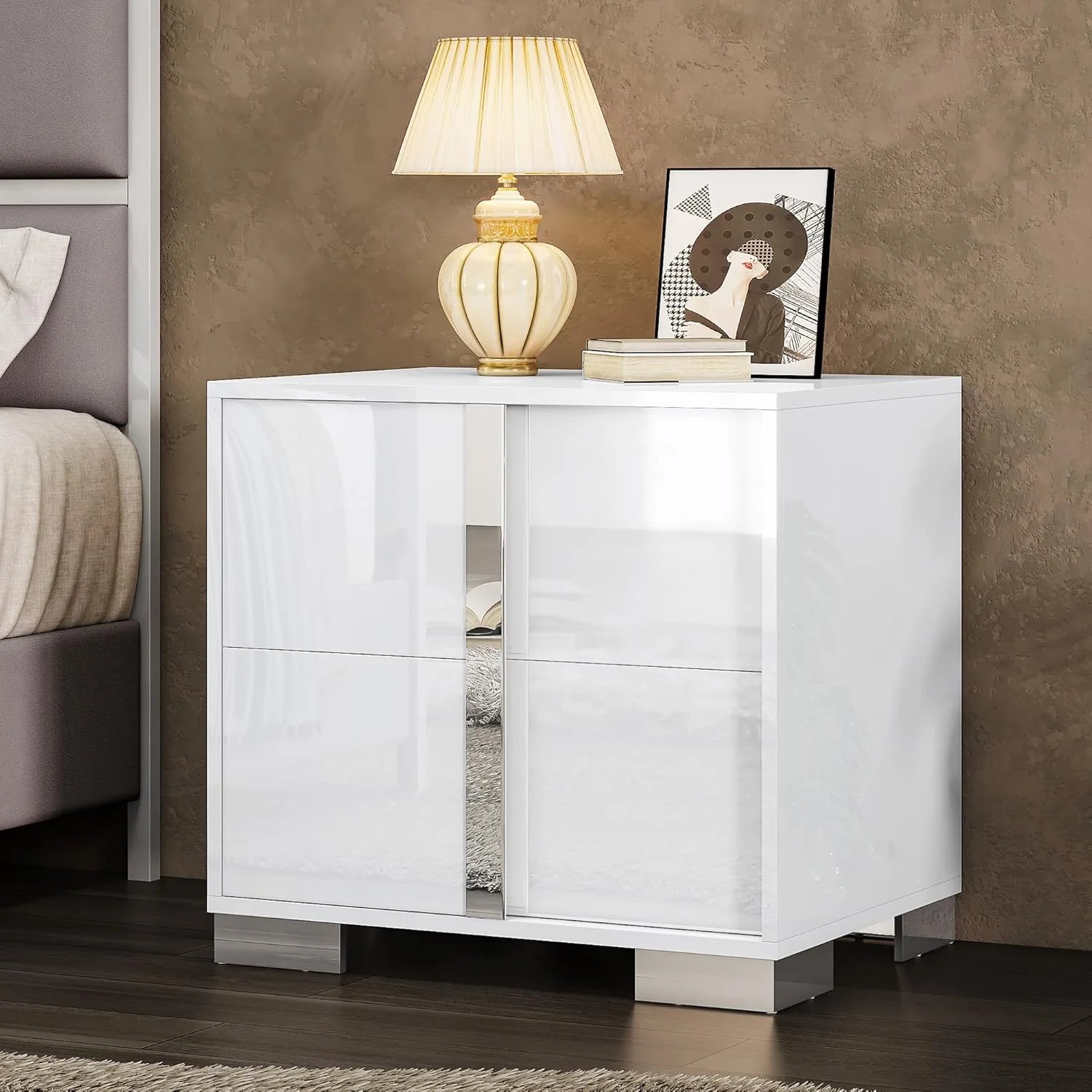VANACC Nightstand with Drawers & High Gloss UV Finish,Storage End Tables for Bedroom