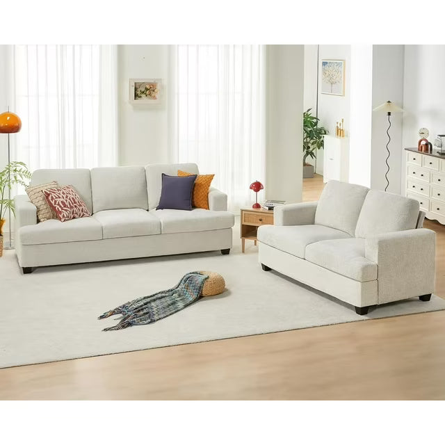Fluffy Chenille Fabric: Upholstered in durable chenille fabric, this sofa set offers a soft, textured feel and brings a sense of warmth and calm to your home.